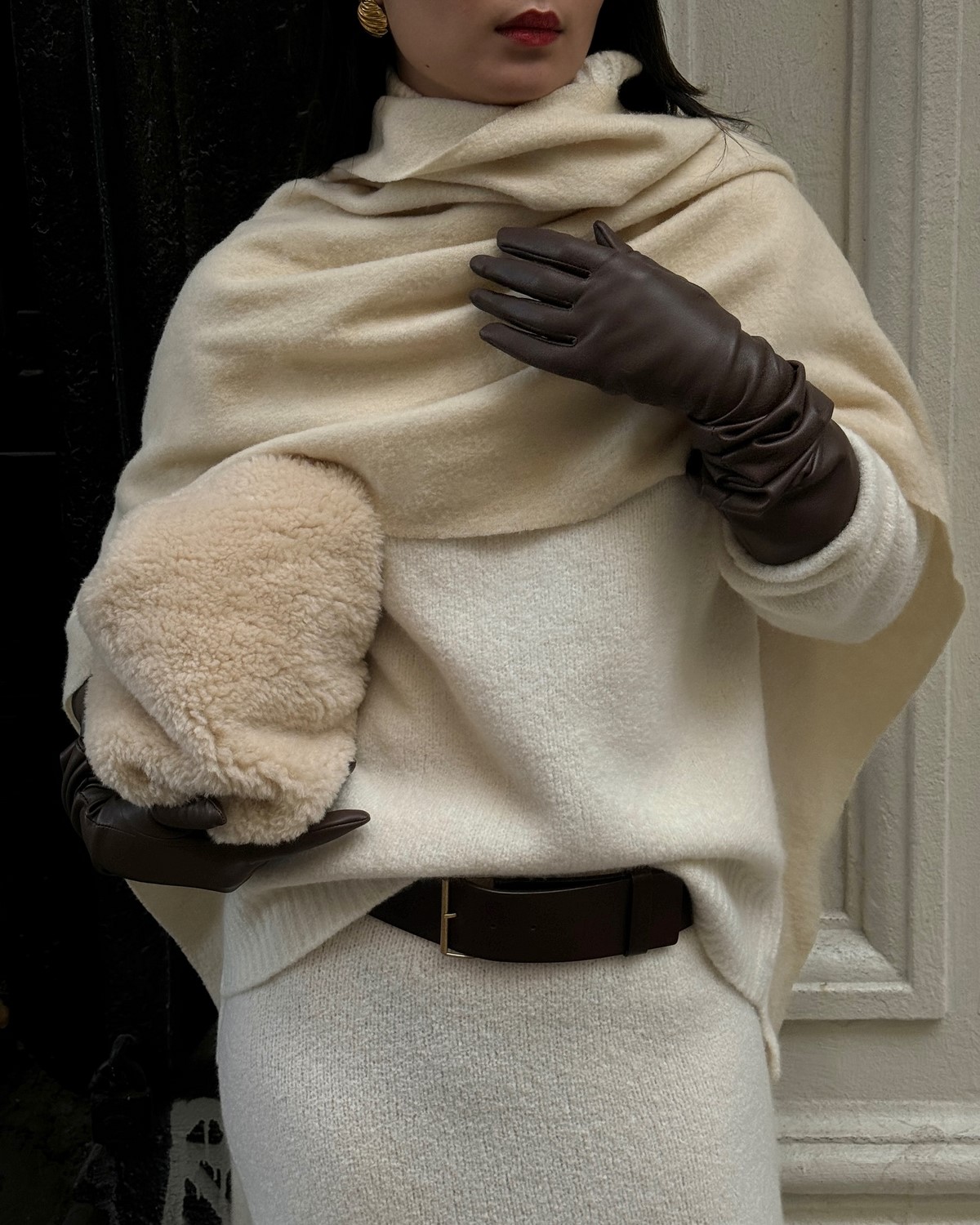 Дубленка возвращается в модный топ, но уже в обновленном прочтении. В сезоне 2025-2026 актуальны как классические модели, так и укороченные варианты с асимметричным кроем. Цветовая палитра расширяется от традиционного бежевого и шоколадного до глубокого бордо и графитового серого. Дубленка легко вписывается в повседневные образы и хорошо сочетается с джинсами, шерстяными брюками или трикотажными платьями.
