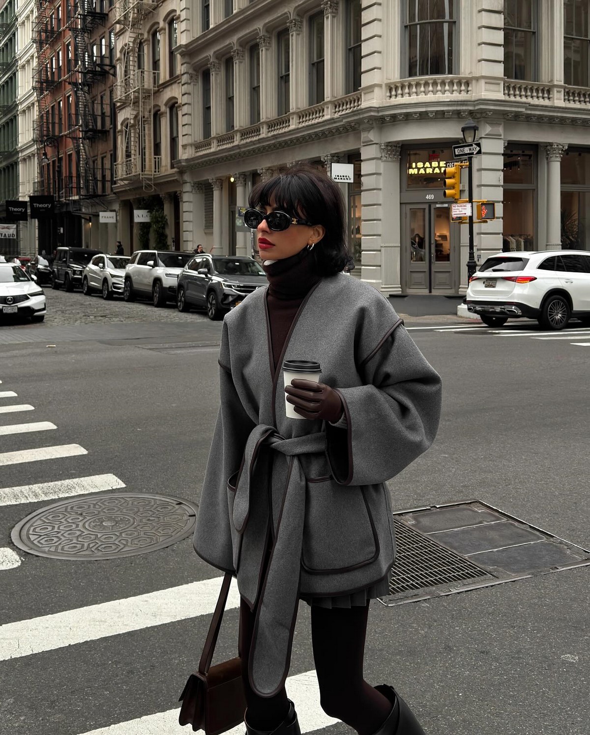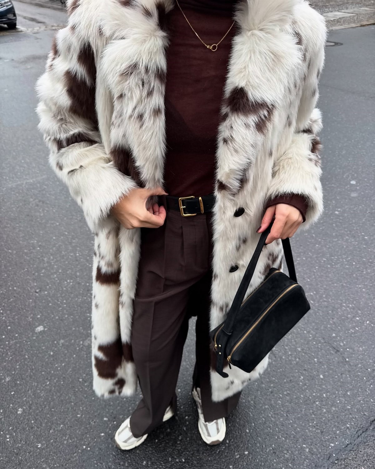 Подчеркнутая талия становится ключевым трендом сезона. Пояса, корсеты и приталенные силуэты помогают создать женственный силуэт даже в объемной верхней одежде. Особенно эффектно смотрятся пальто или дубленки с широким ремнем. Этот тренд гармонично вписывается как в элегантные, так и в кэжуал-образы.