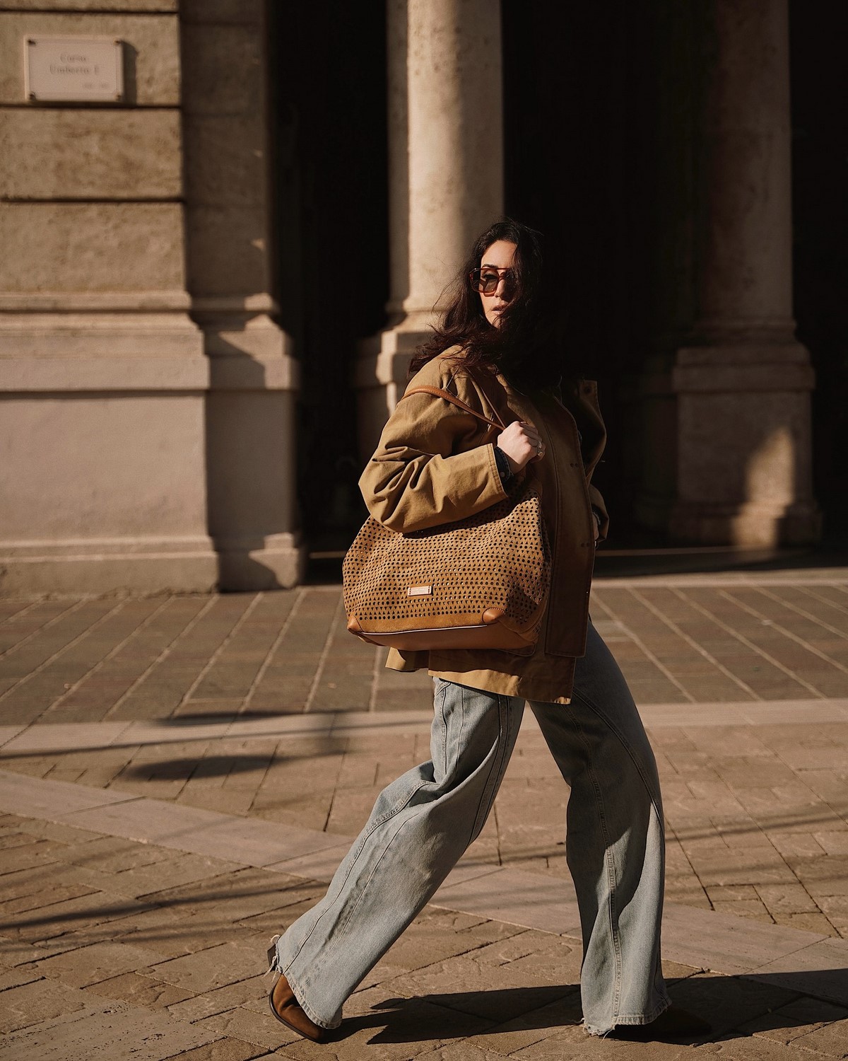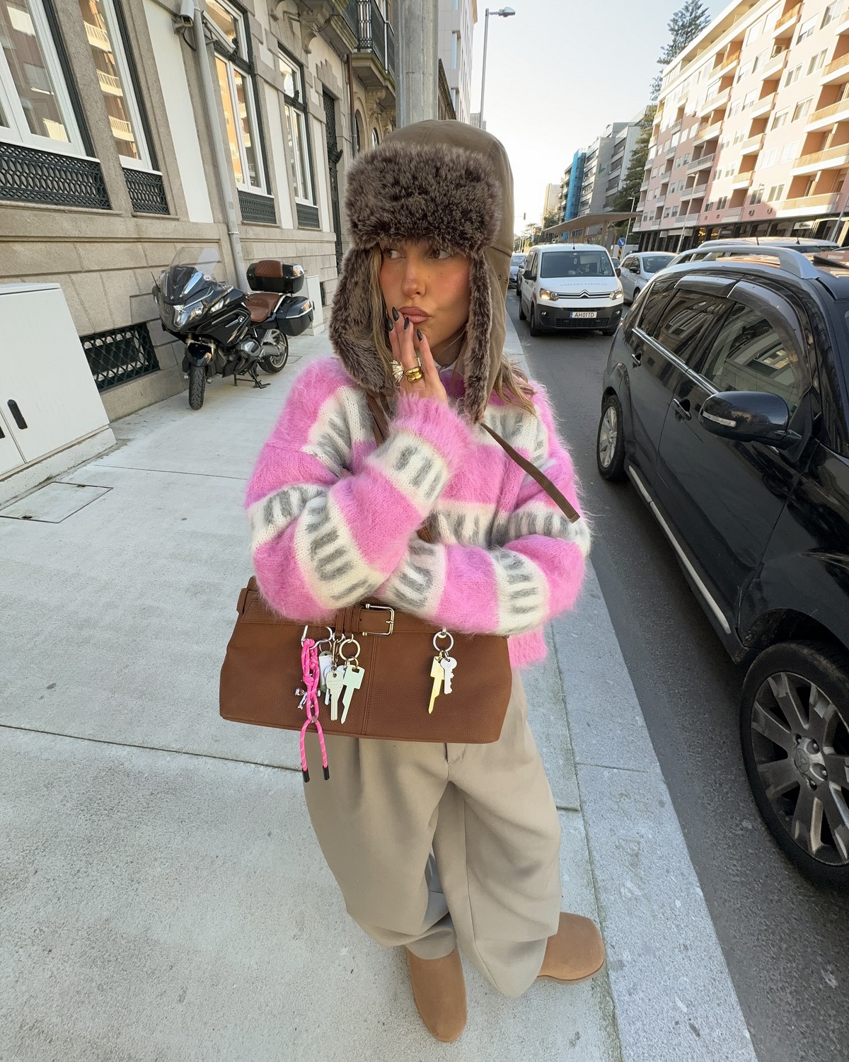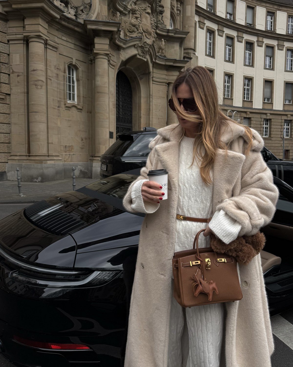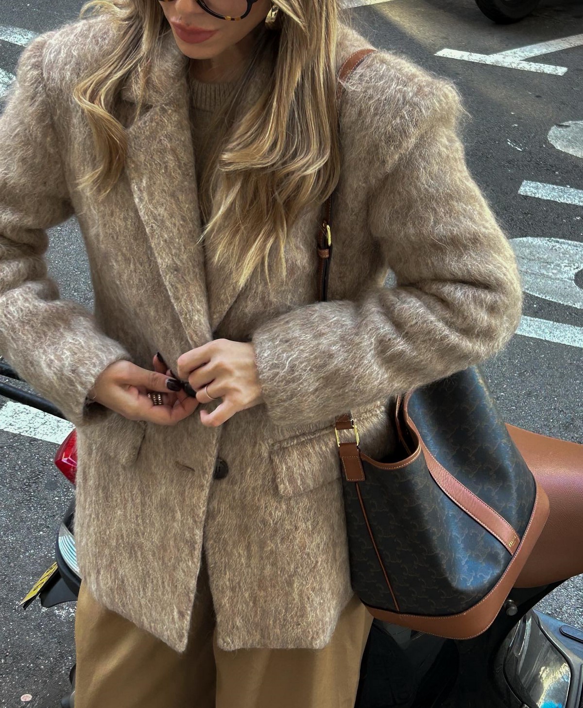 Бахрома снова возвращается на подиум и теперь украшает не только вечерние платья, но и повседневные пальто, свитера и даже сумки. Она придает движению легкость и динамику, делая любой образ более выразительным. Зимой 2025-2026 бахрома встречается в монохромных ансамблях и ярких акцентных деталях.
