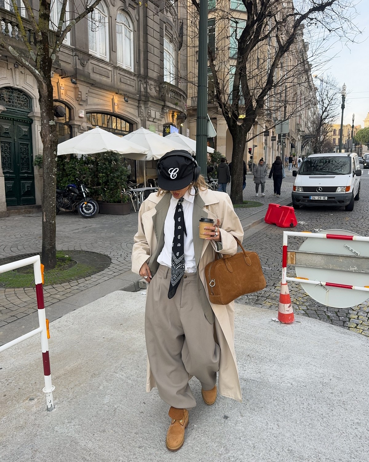 - Оверсайз с акцентами: объемные силуэты уравновешиваются подчеркнутой талией или облегающими элементами