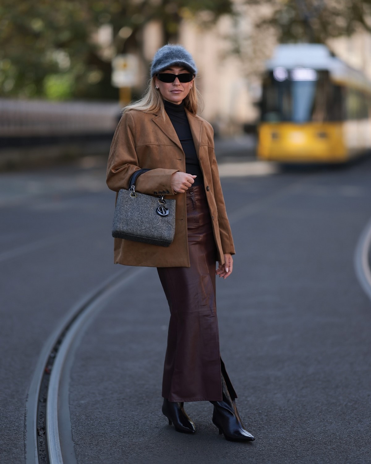 - Макси-длина: удлиненные пальто, юбки и платья доминируют на подиумах
