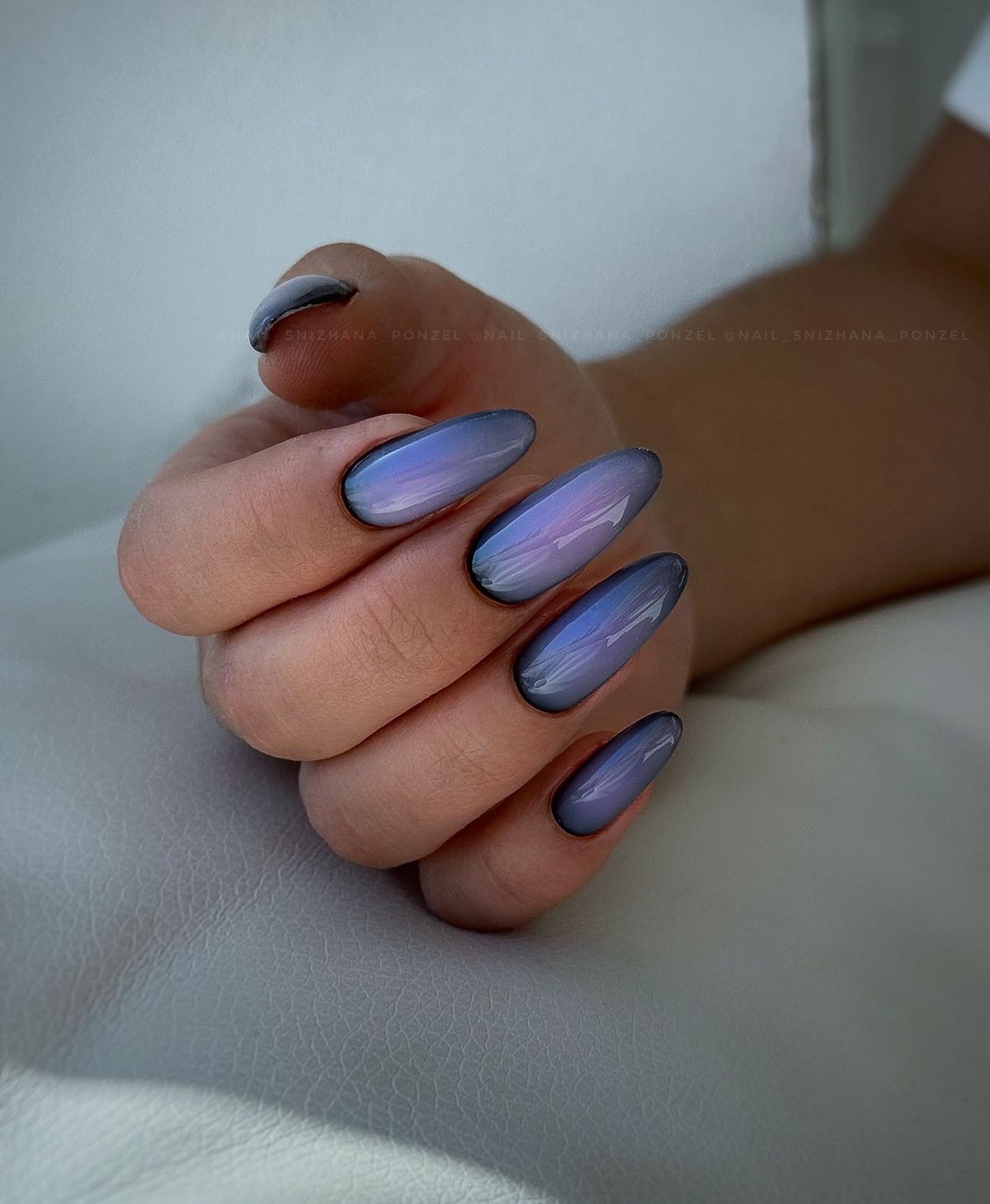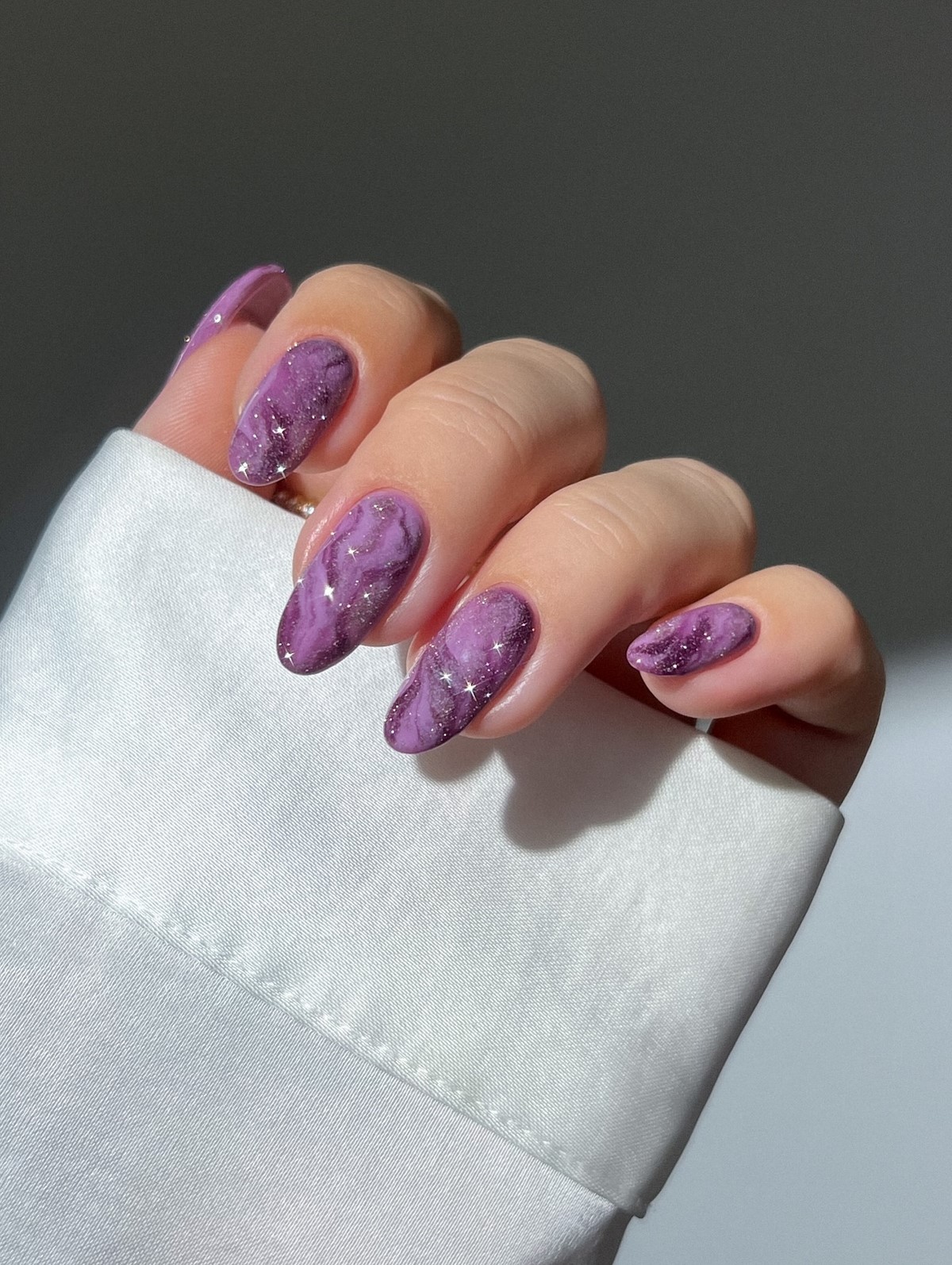 Фиолетовая палитра предлагает богатый выбор оттенков — от нежного лавандового до глубокого баклажанового. Эти цвета добавляют образу загадочности и креативности, подчеркивая индивидуальность владелицы. Фиолетовый маникюр особенно эффектно смотрится в сочетании с серебряными или золотыми акцентами. Дизайнеры рекомендуют экспериментировать с различными текстурами и эффектами для создания уникальных композиций.
