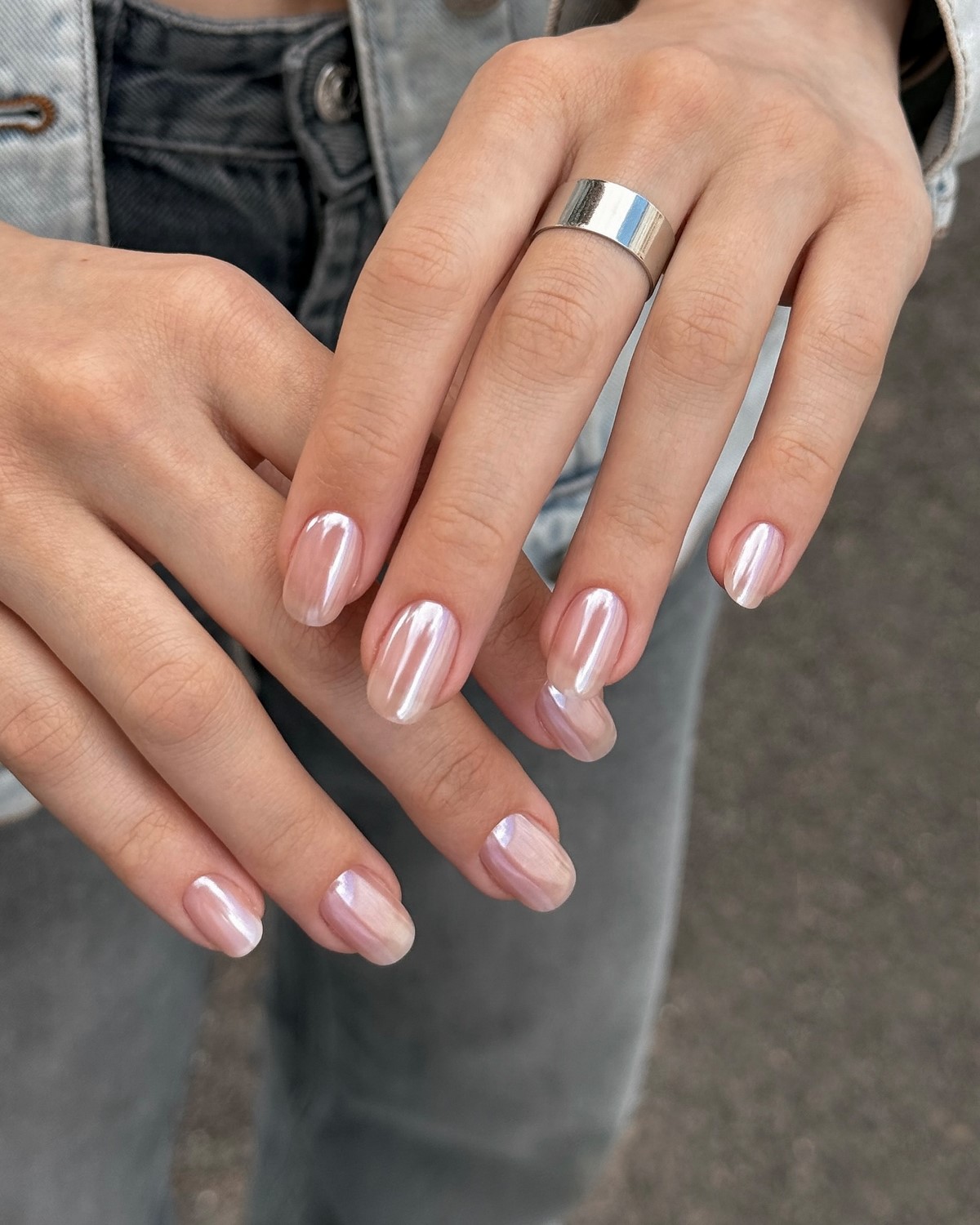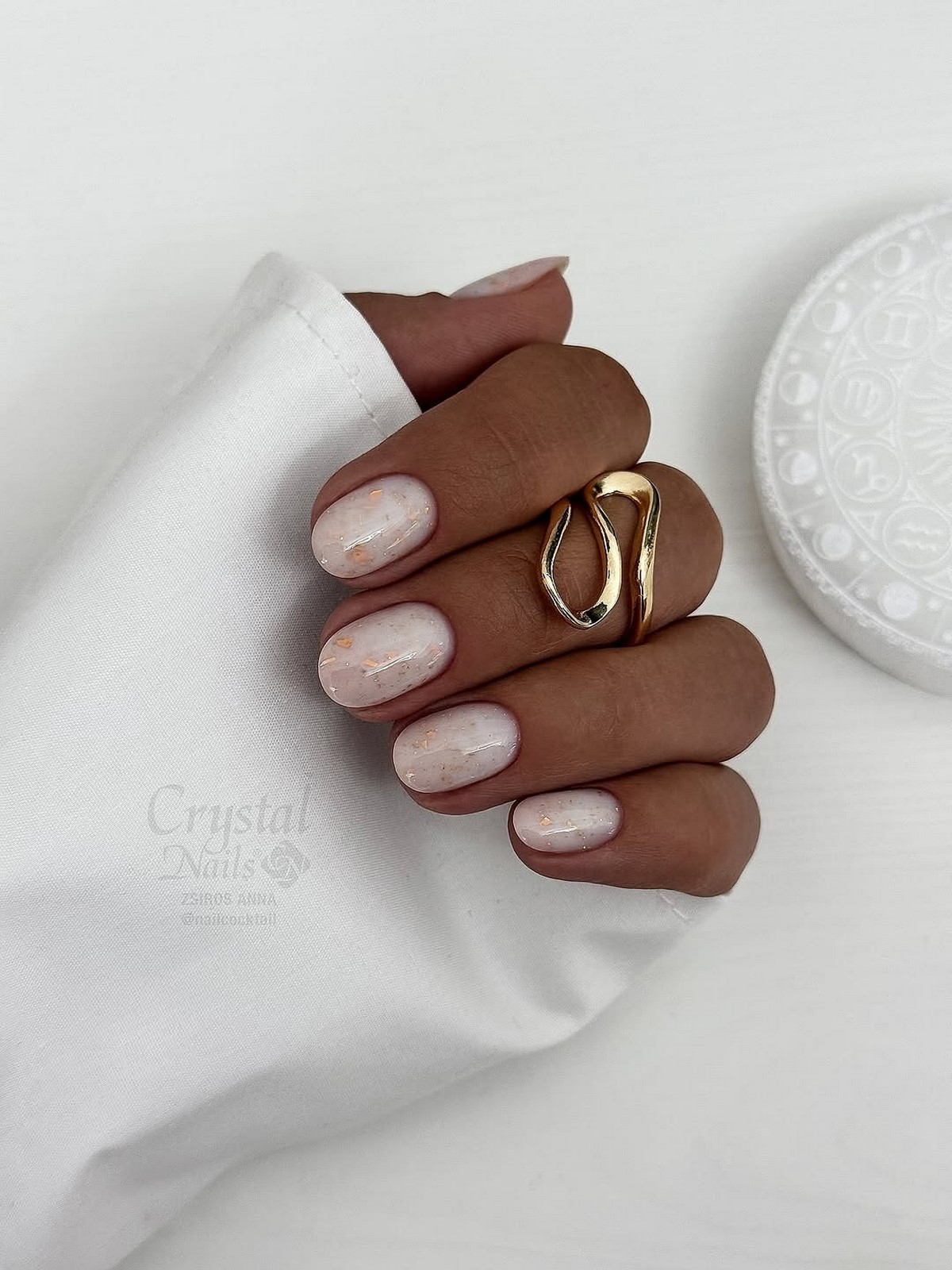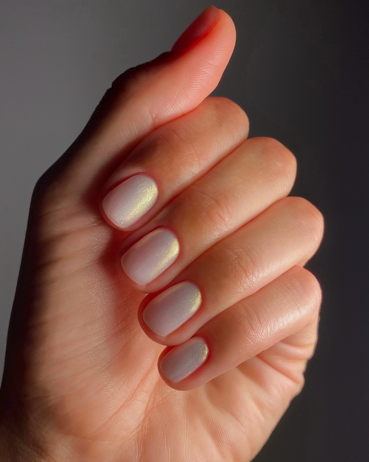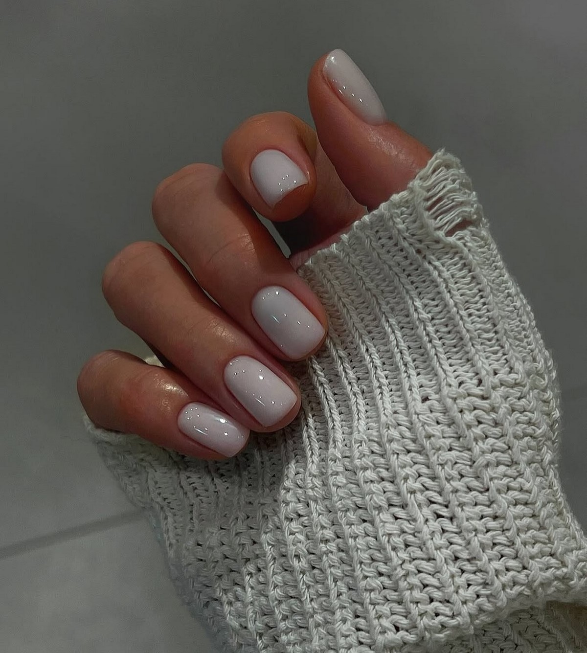 Молочные оттенки с легким жемчужным или перламутровым эффектом становятся настоящим хитом холодного сезона. Эти нежные цвета создают деликатные и изысканные образы, подходящие для любого случая. Молочный маникюр может быть дополнен минималистичными акцентами или выполнен в технике «стеклянных ногтей». Особенно эффектно такие оттенки смотрятся на коротких ногтях естественной формы.