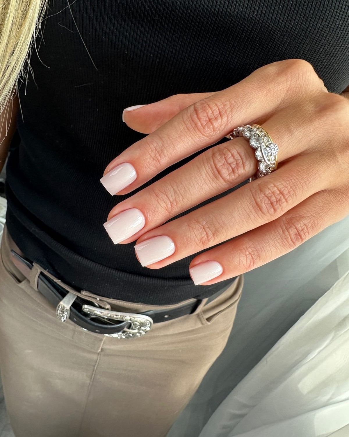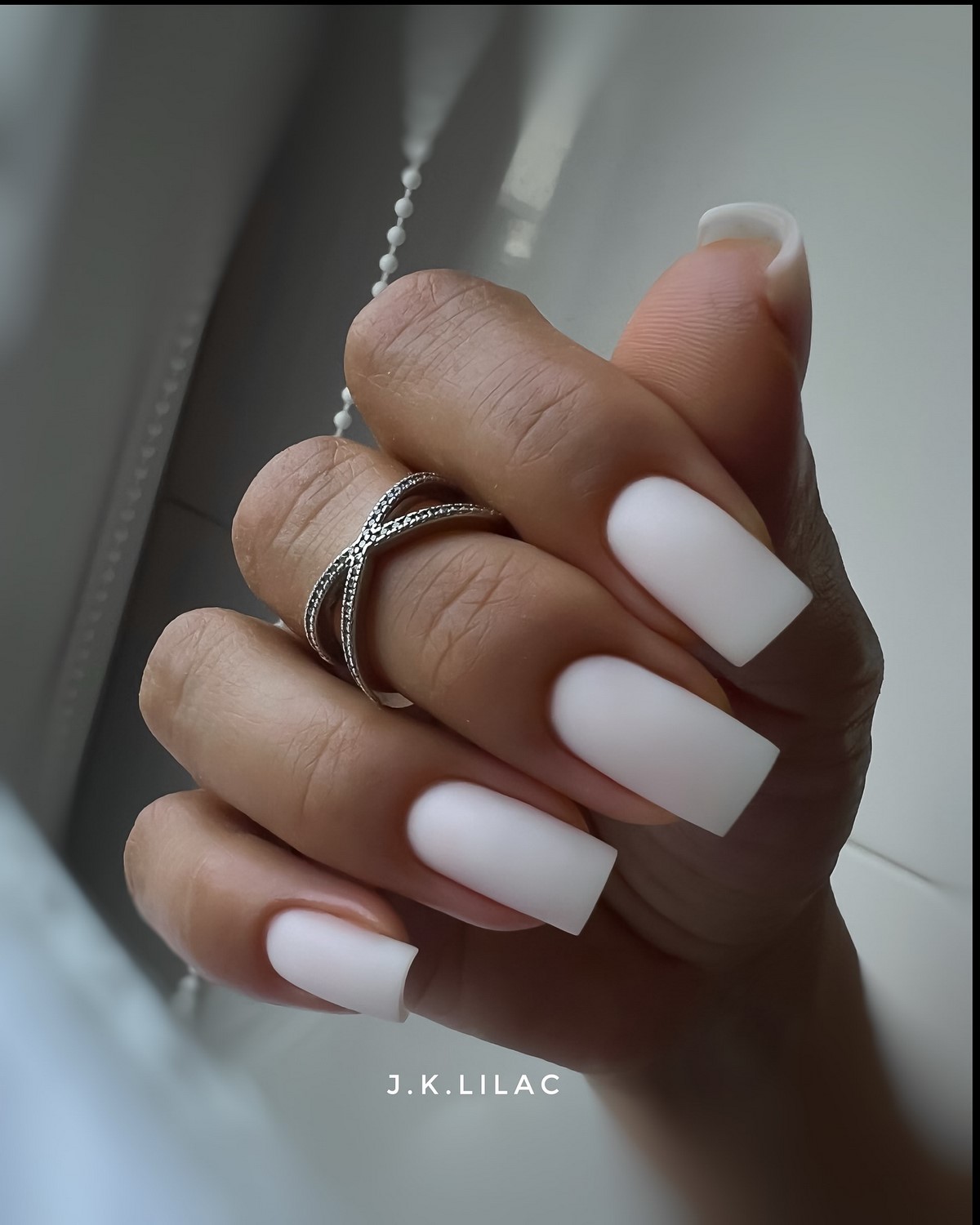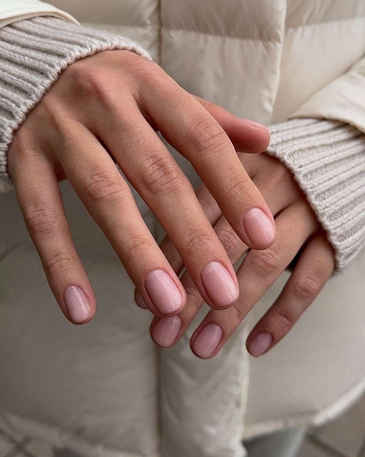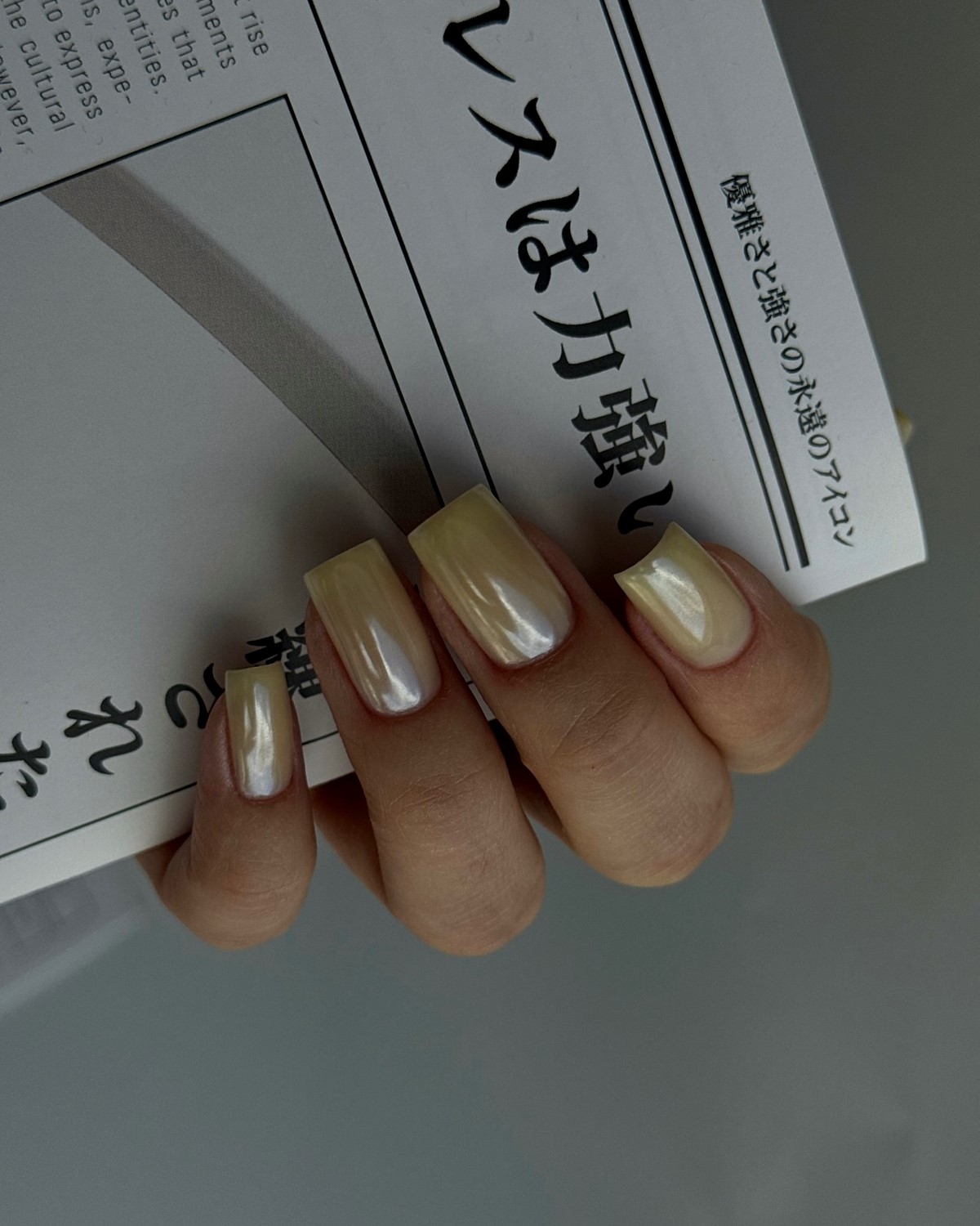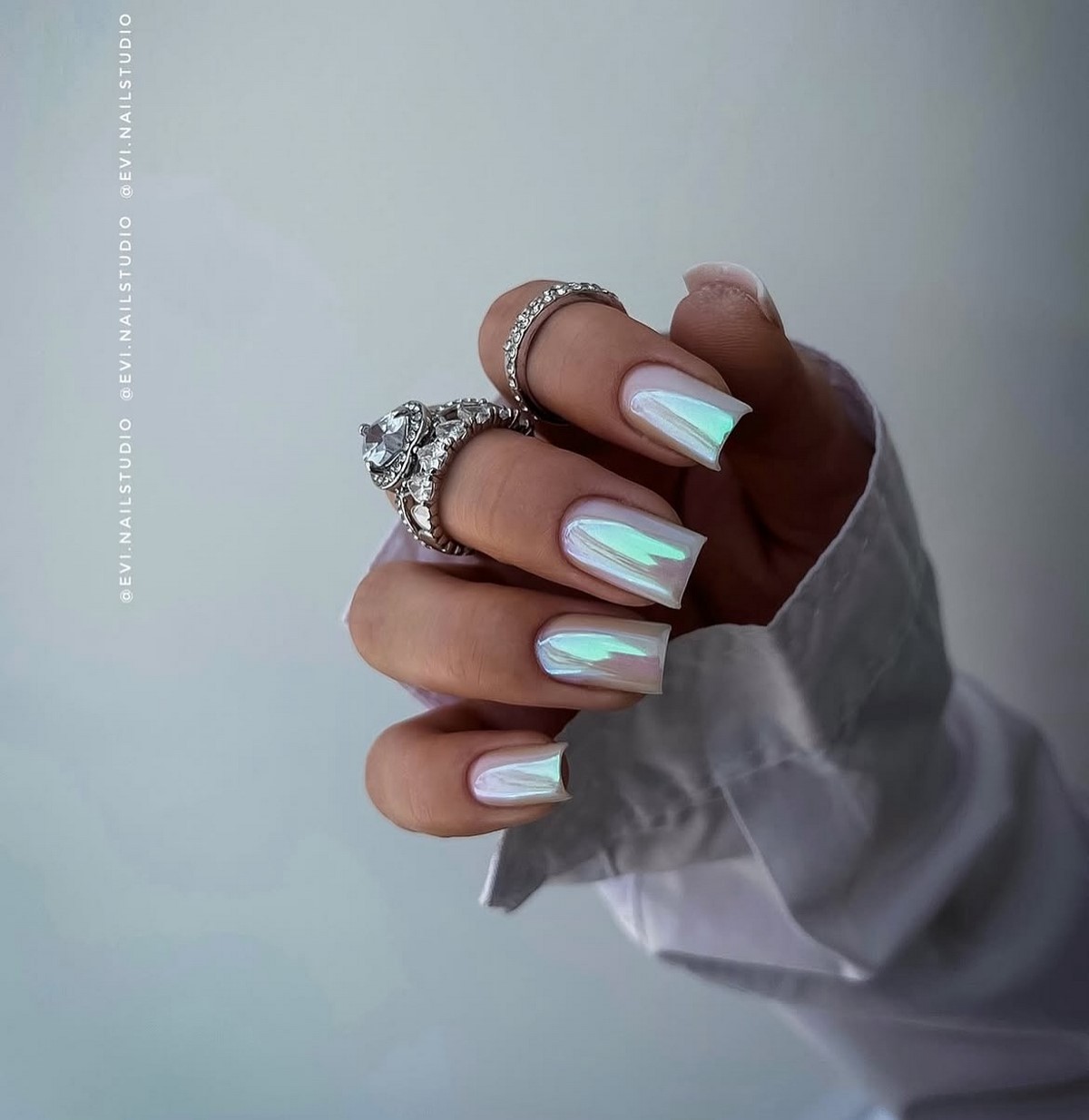 Молочные оттенки с легким жемчужным или перламутровым эффектом становятся настоящим хитом холодного сезона. Эти нежные цвета создают деликатные и изысканные образы, подходящие для любого случая. Молочный маникюр может быть дополнен минималистичными акцентами или выполнен в технике «стеклянных ногтей». Особенно эффектно такие оттенки смотрятся на коротких ногтях естественной формы.