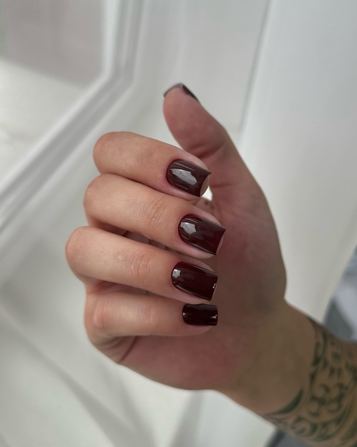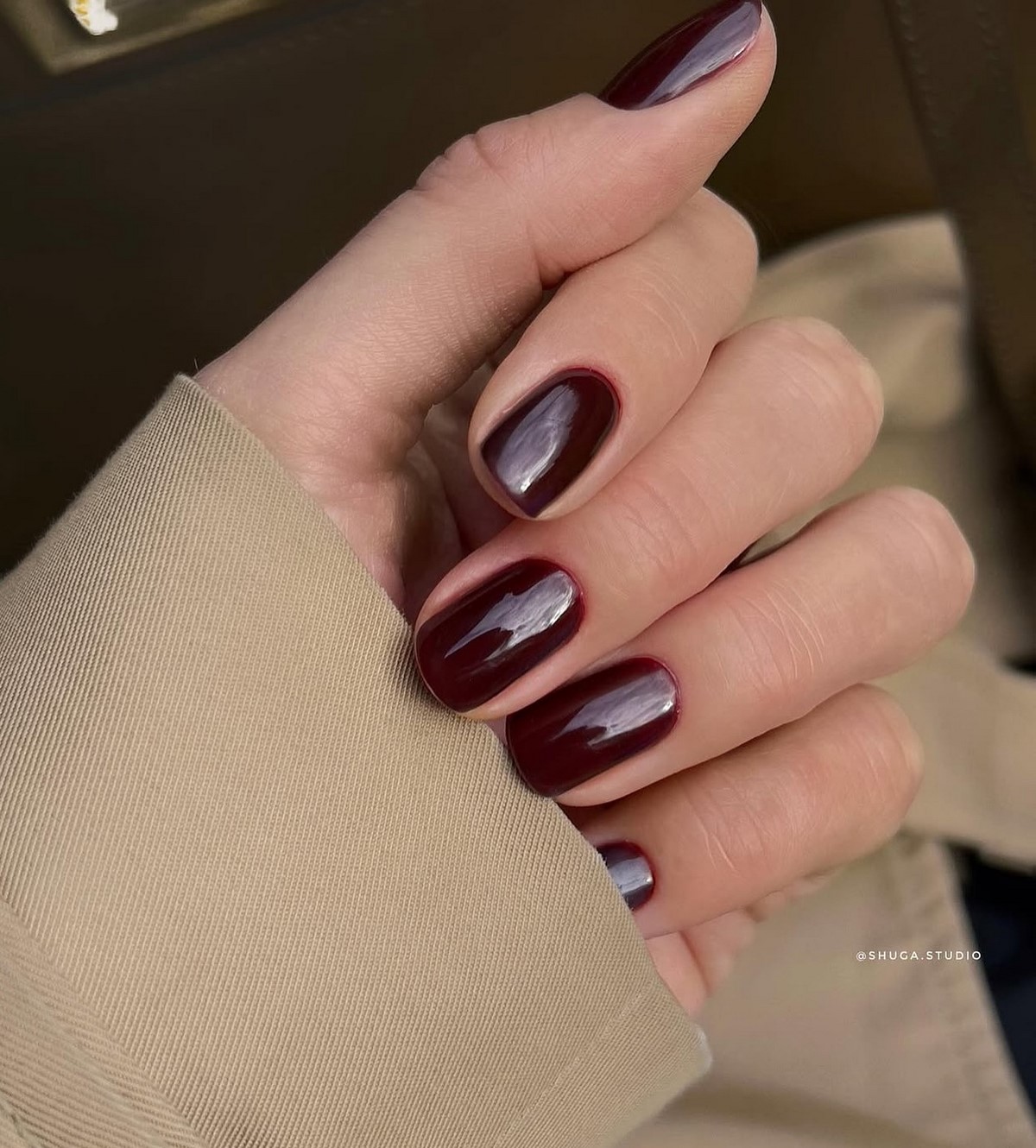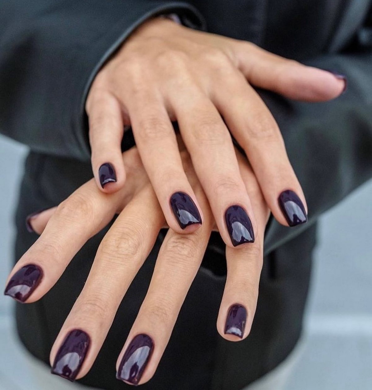 Сливовый оттенок сочетает в себе загадочность фиолетового и элегантность бордового, создавая уникальный цвет, идеально подходящий для холодного сезона. Этот глубокий и насыщенный тон прекрасно дополняет зимний гардероб и подходит практически всем цветотипам внешности. Сливовый маникюр может быть дополнен глиттером или голографическими элементами для создания более праздничного образа. Особенно эффектно этот цвет смотрится в матовом исполнении, подчеркивающем его благородство.