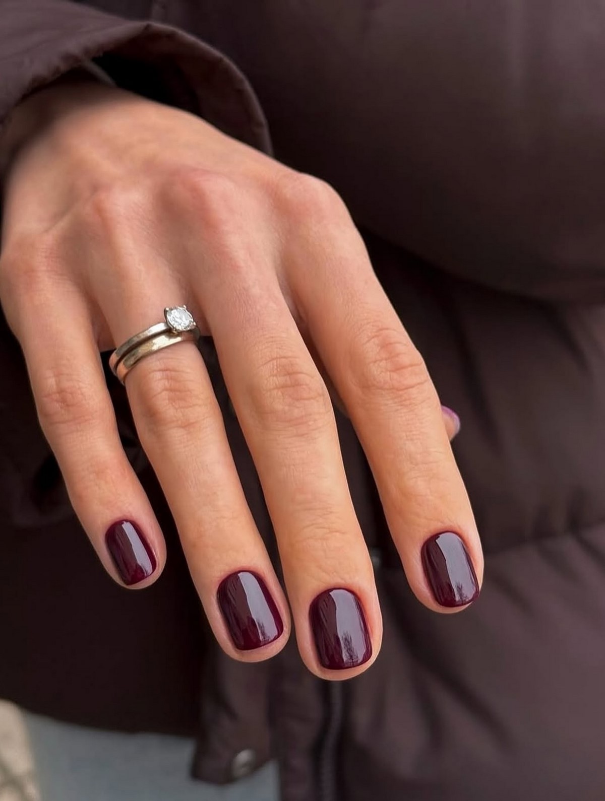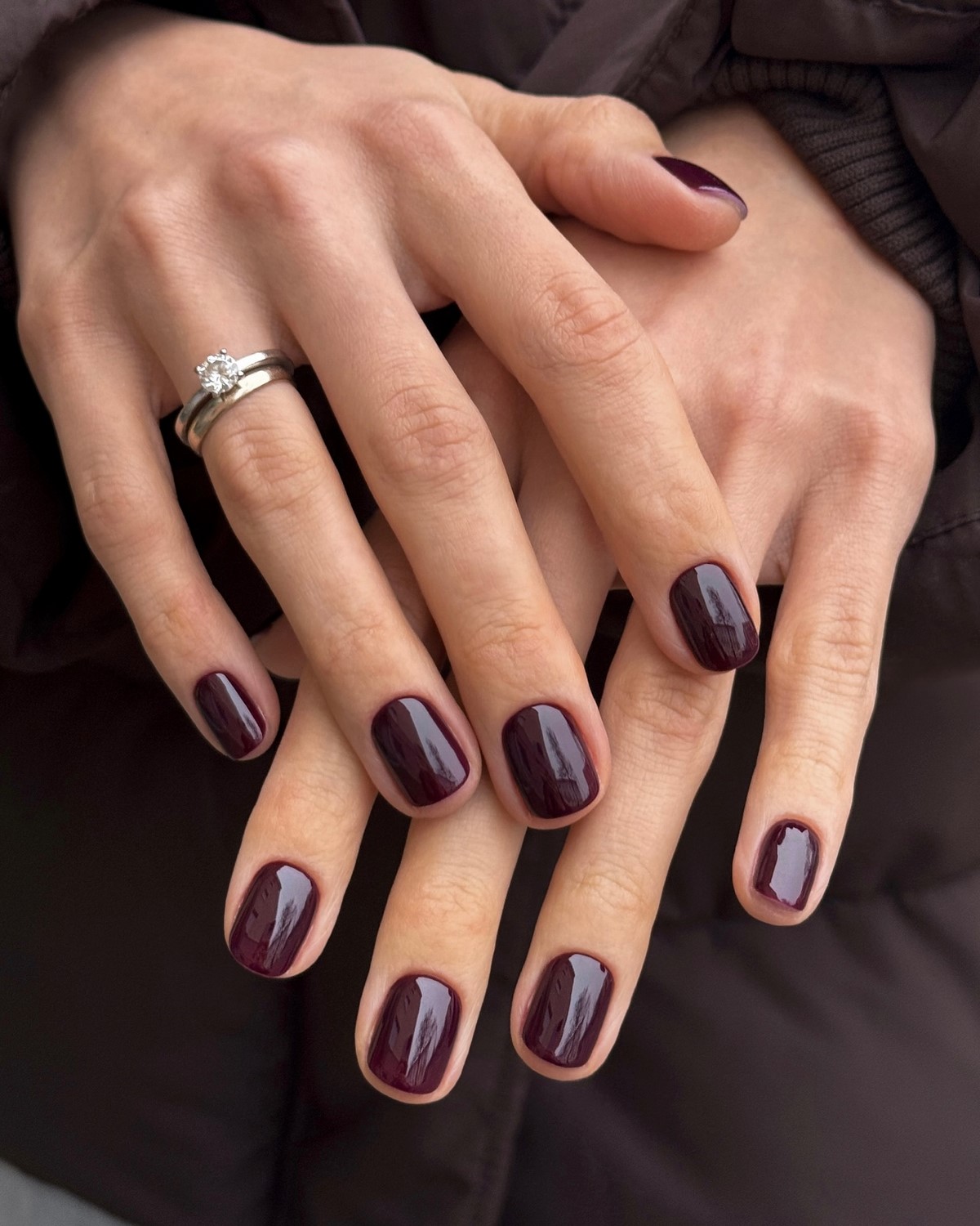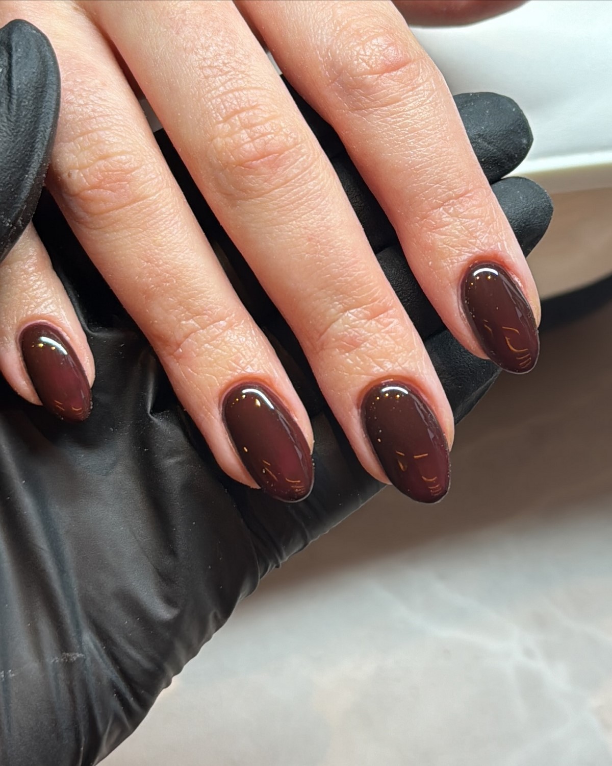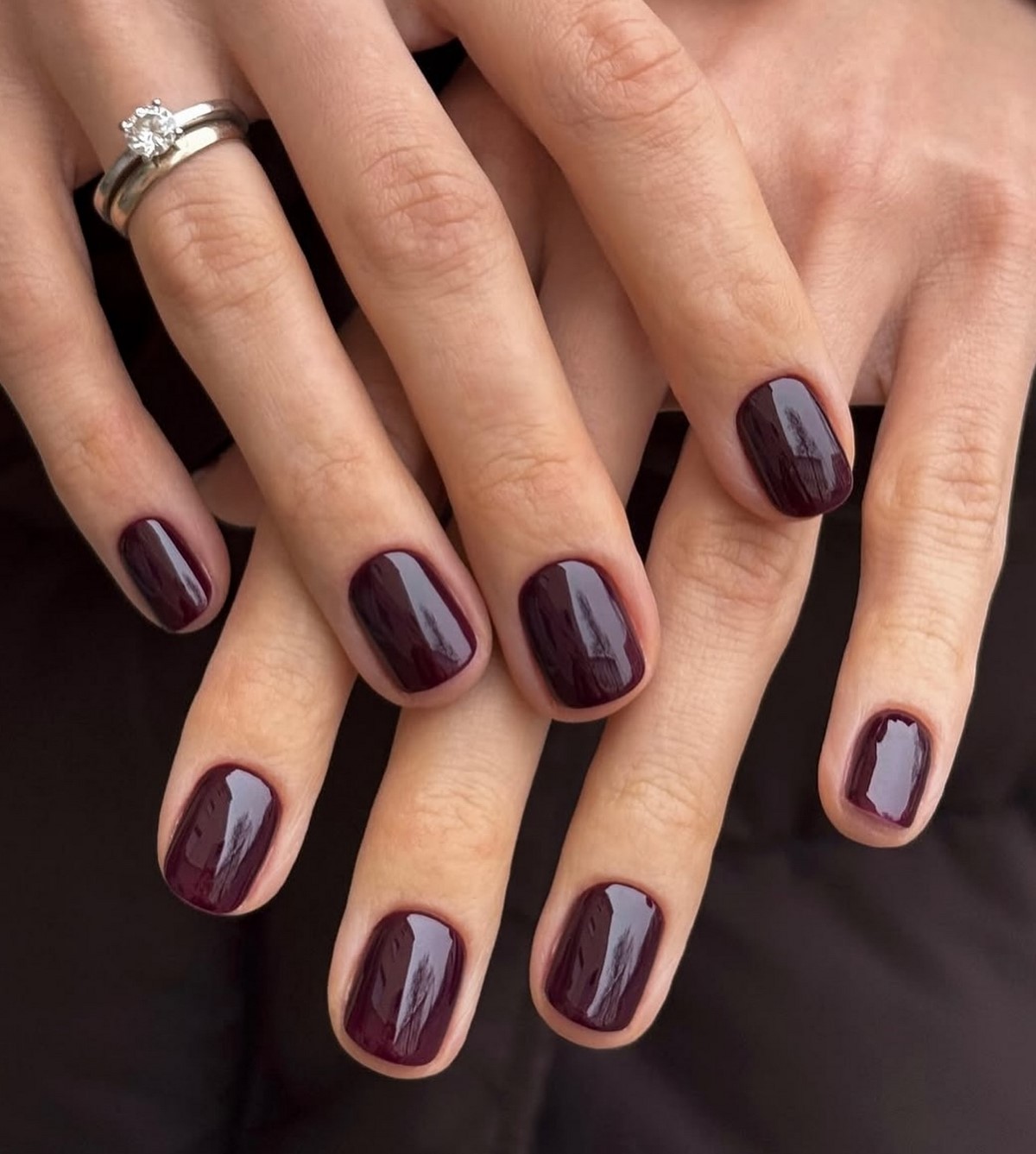 Сливовый оттенок сочетает в себе загадочность фиолетового и элегантность бордового, создавая уникальный цвет, идеально подходящий для холодного сезона. Этот глубокий и насыщенный тон прекрасно дополняет зимний гардероб и подходит практически всем цветотипам внешности. Сливовый маникюр может быть дополнен глиттером или голографическими элементами для создания более праздничного образа. Особенно эффектно этот цвет смотрится в матовом исполнении, подчеркивающем его благородство.