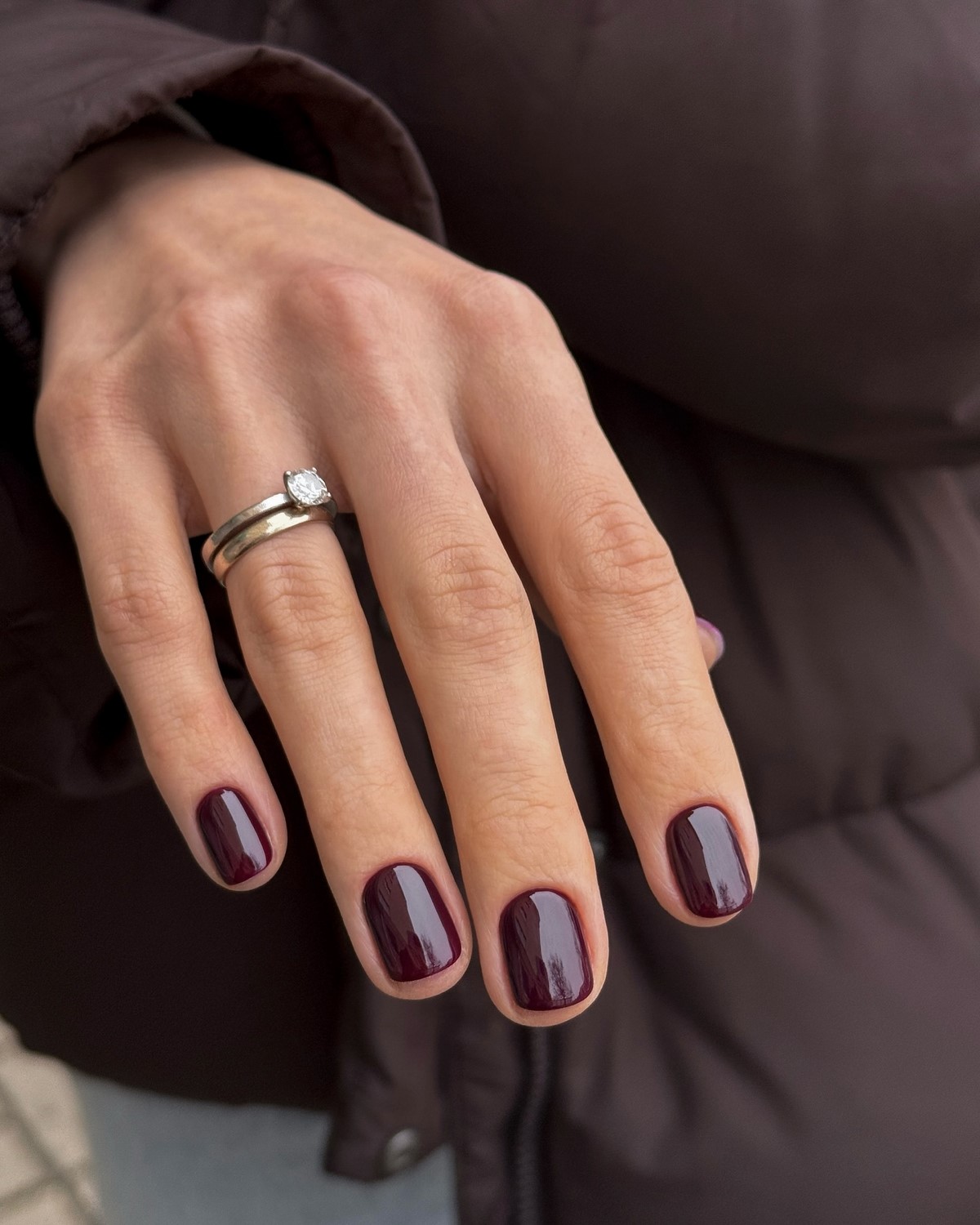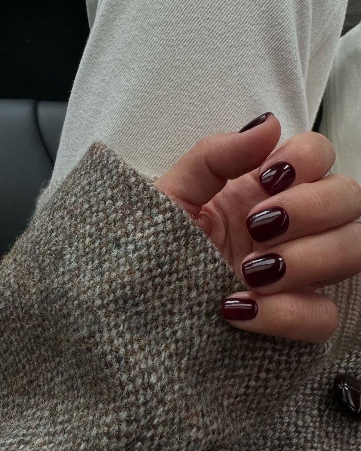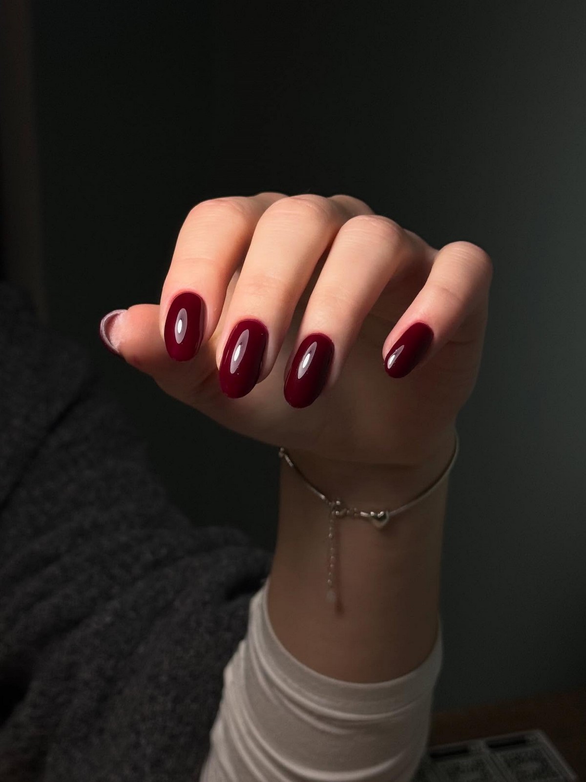 Глубокий бордовый цвет воплощает в себе всю элегантность и драматичность холодного сезона. Этот благородный оттенок, напоминающий о выдержанном вине и осенней листве, идеально подходит для создания роскошных образов. Бордовый маникюр особенно выигрышно смотрится на коже с холодным подтоном, создавая изысканный контраст. Дизайнеры рекомендуют сочетать бордовый с золотыми или медными акцентами для создания более сложных композиций.