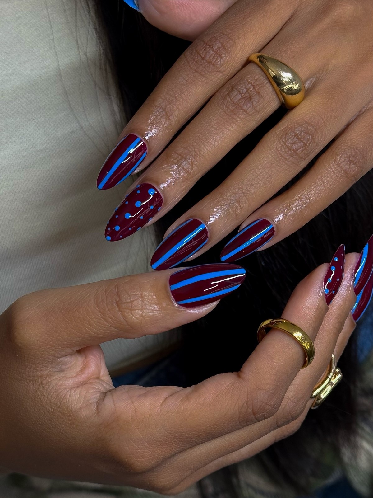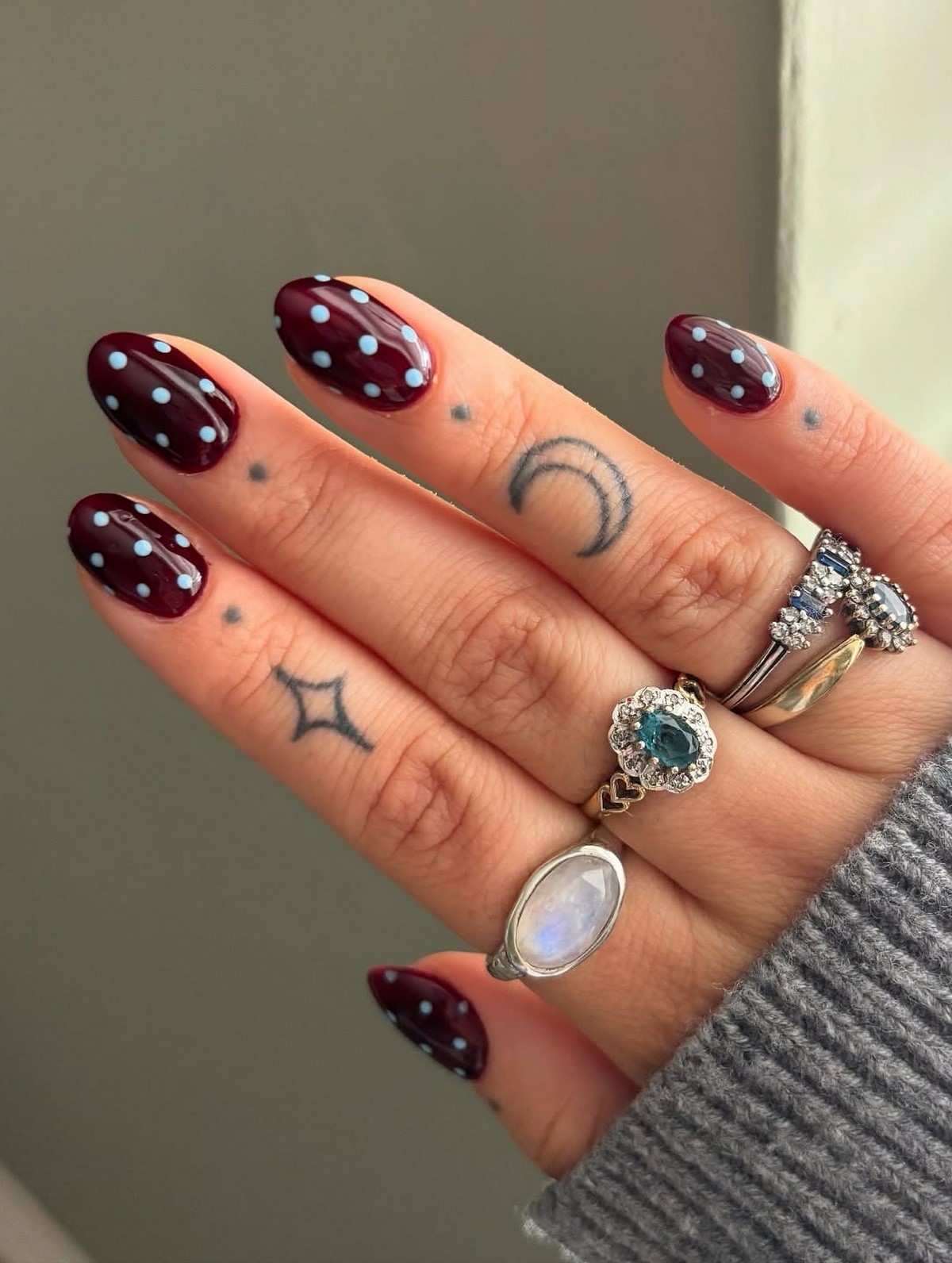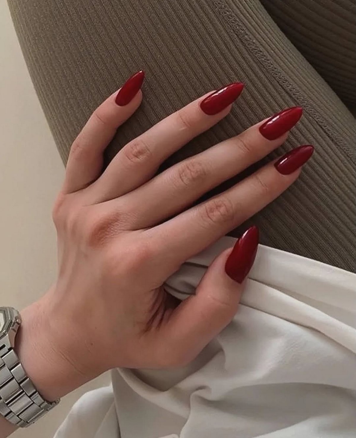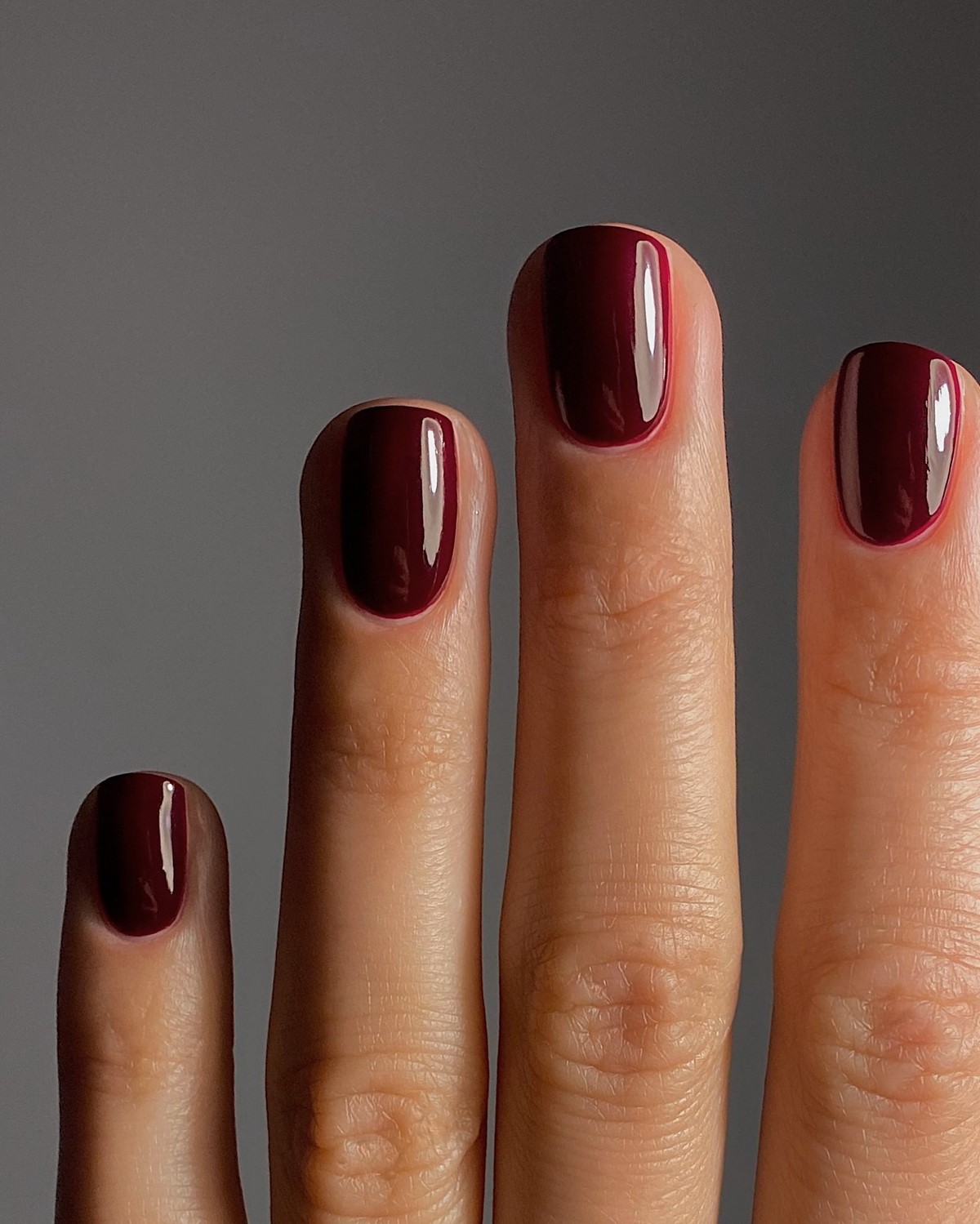 Глубокий бордовый цвет воплощает в себе всю элегантность и драматичность холодного сезона. Этот благородный оттенок, напоминающий о выдержанном вине и осенней листве, идеально подходит для создания роскошных образов. Бордовый маникюр особенно выигрышно смотрится на коже с холодным подтоном, создавая изысканный контраст. Дизайнеры рекомендуют сочетать бордовый с золотыми или медными акцентами для создания более сложных композиций.