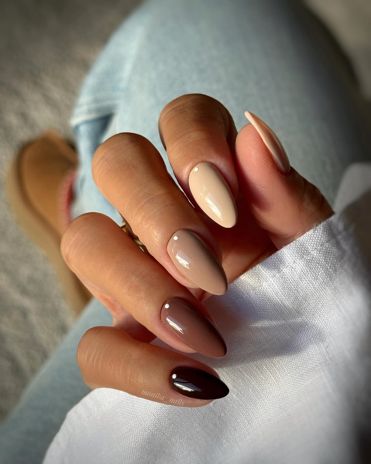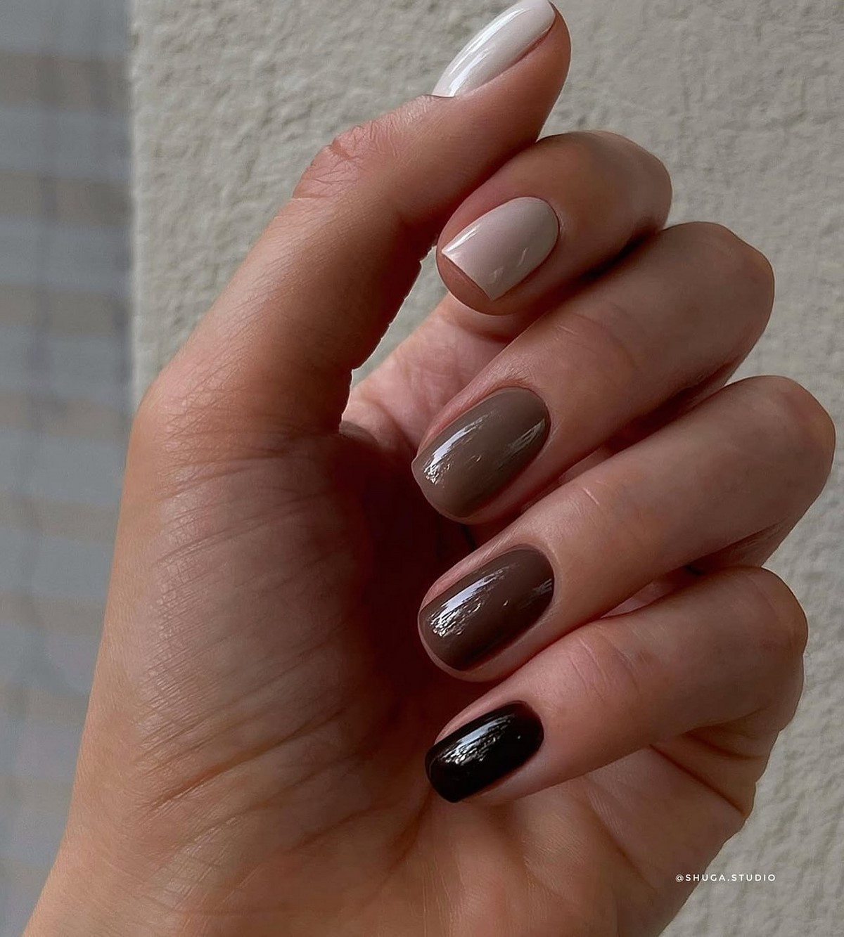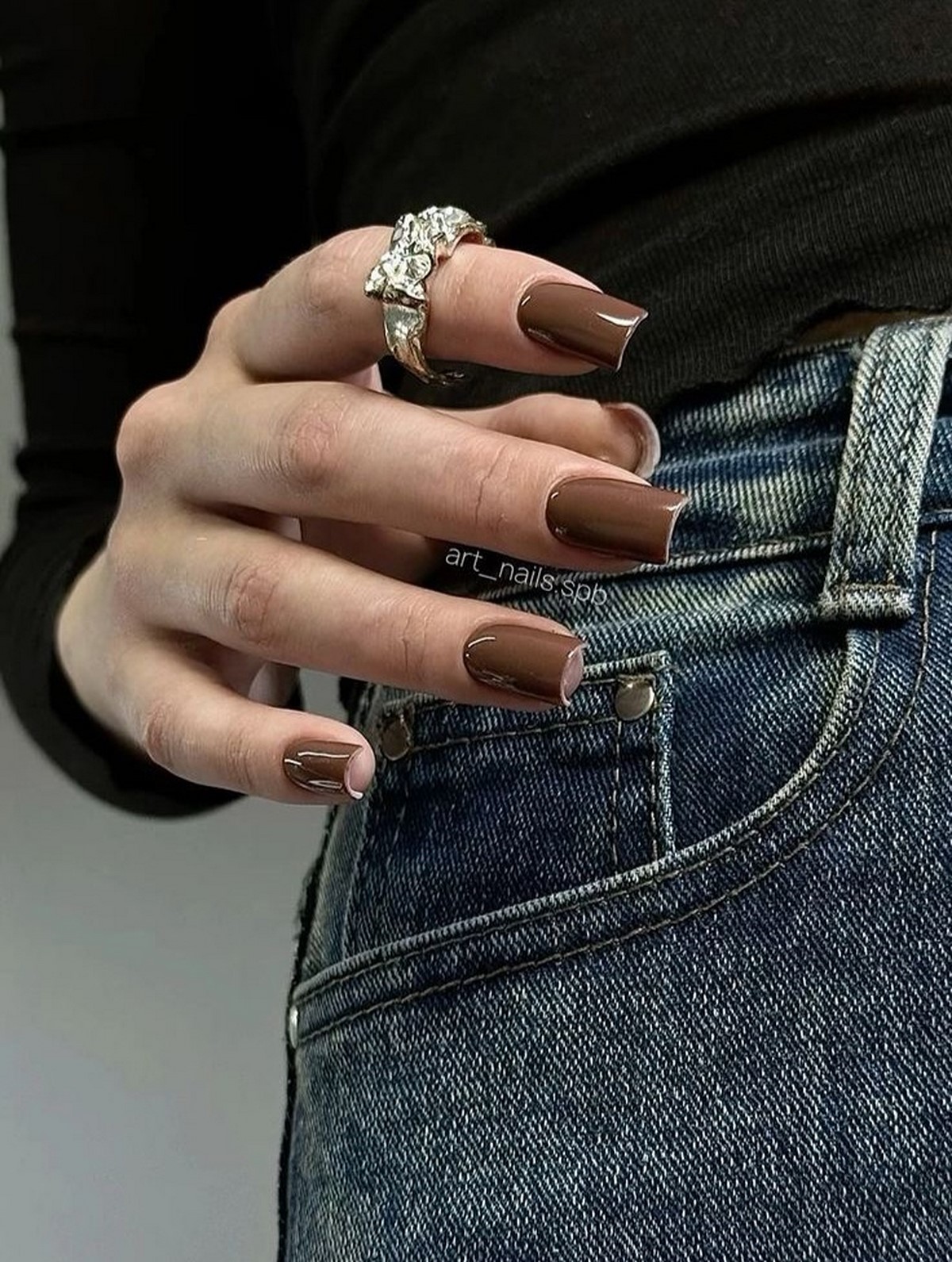 Коричневая палитра переживает настоящий ренессанс в маникюрной индустрии, предлагая множество оттенков от светлого какао до темного шоколада. Этот универсальный цвет прекрасно сочетается с любым стилем одежды и подходит для всех цветотипов внешности. Коричневый маникюр может быть выполнен как в глянцевом, так и в матовом варианте, каждый из которых создает свое настроение. Особенно трендовым считается сочетание разных оттенков коричневого в технике колор-блокинг или омбре.