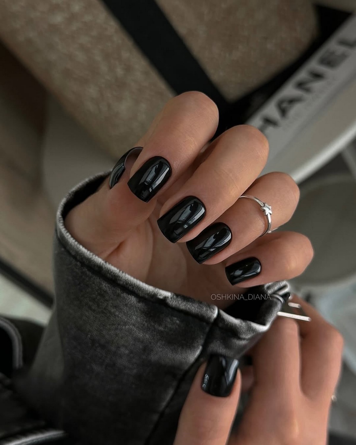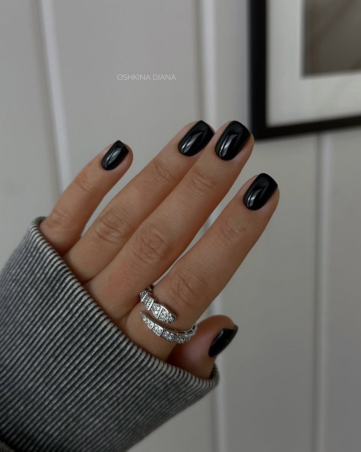 Классический черный маникюр переживает новую волну популярности, предлагая множество вариаций от глянцевого до матового, от однотонного до декорированного различными элементами. Черный цвет универсален и подходит для любого случая — от деловых встреч до вечерних мероприятий. Современные интерпретации черного маникюра включают различные текстуры, голографические эффекты и минималистичные акценты. Дизайнеры рекомендуют сочетать черный с контрастными цветами или металлическими деталями для создания более интересных композиций.