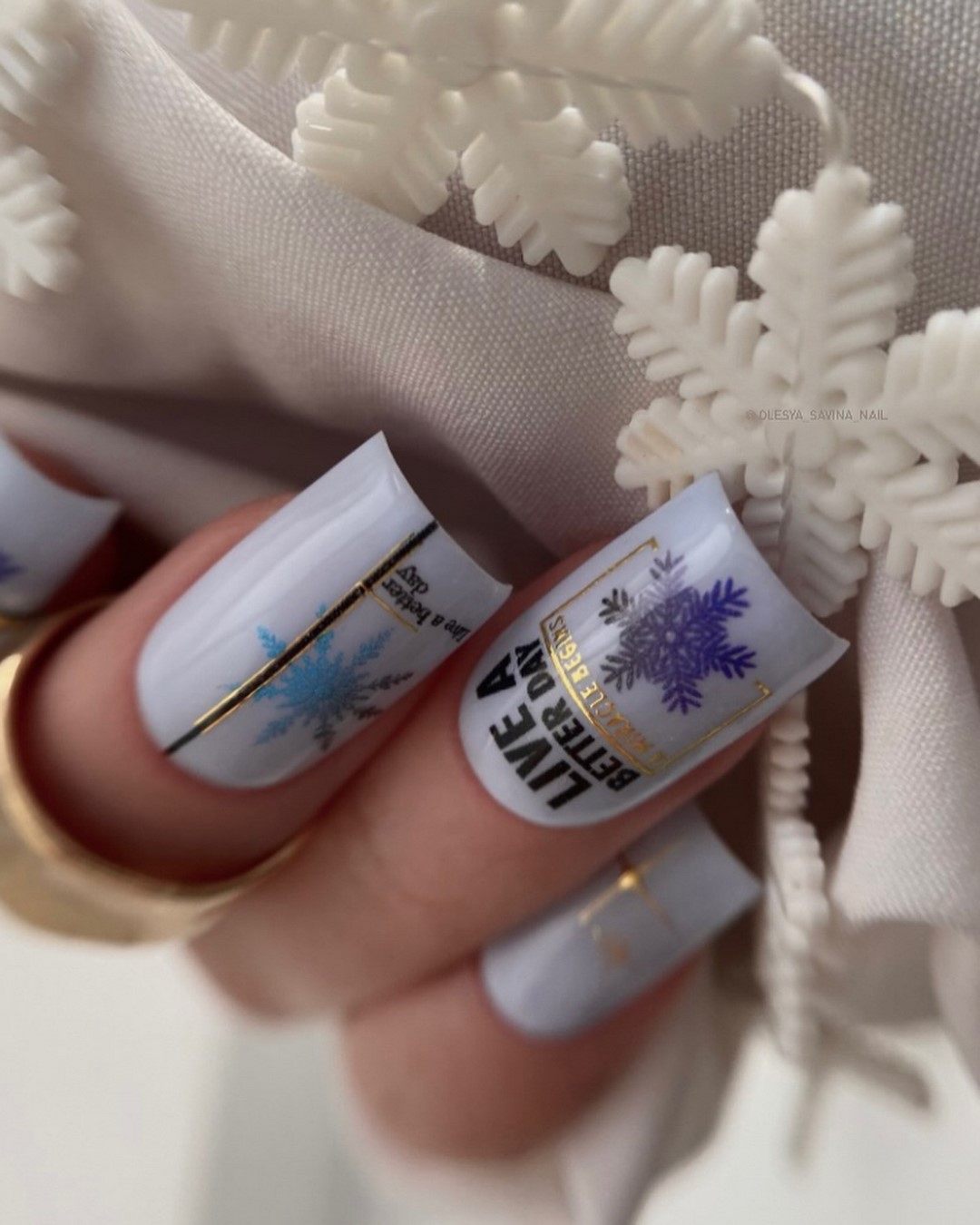 Снежинки – неоспоримая классика зимнего маникюра. Ручная роспись или готовые слайдеры позволяют создавать изысканные и легкие дизайны. Белоснежные или серебристые снежинки на прозрачной базе выглядят особенно изящно, а акценты из страз придают маникюру праздничный характер.