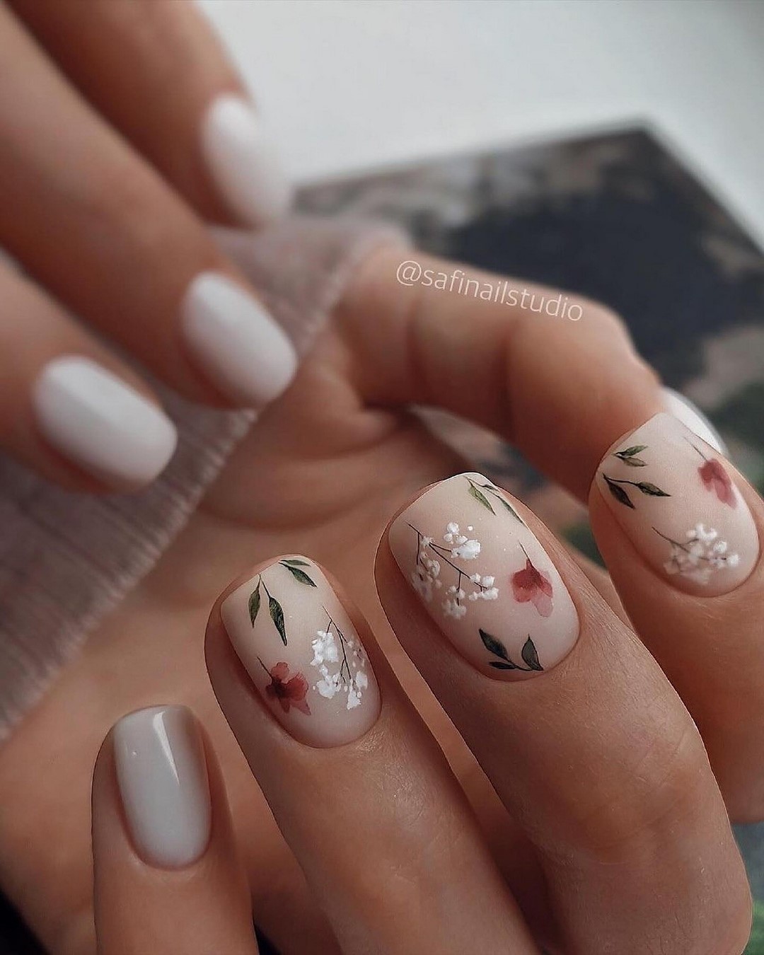 Флок-дизайн, создающий пушистую текстуру, добавляет маникюру тепла и уюта. Бархатный эффект выглядит особенно привлекательно в белых, бежевых и пастельных оттенках. Это решение идеально подходит для зимних образов и особенно актуально в сочетании с вязаным узором.