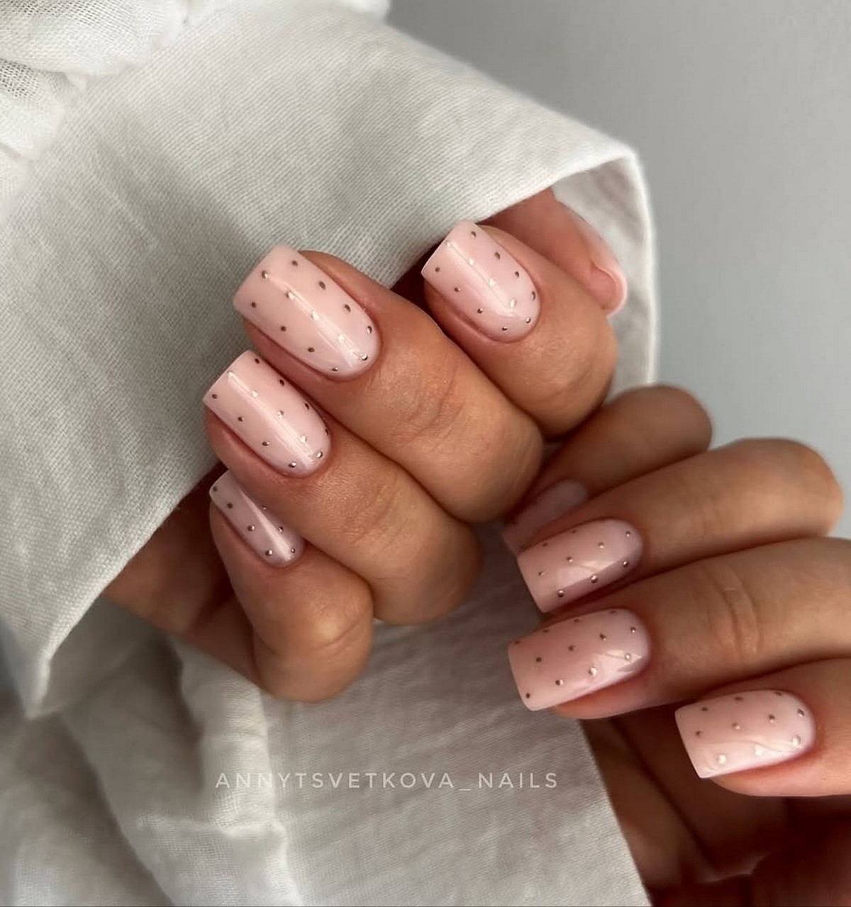 Зимой 2025 короткие ногти в моде, и Polka Dots отлично подчеркивает их аккуратность. Маленькие точки визуально удлиняют пластину, особенно если нанести их вертикально. Элегантно выглядит нюдовая база с белыми или серебристыми акцентами. Такой дизайн практичен и идеально подходит для повседневного стиля.