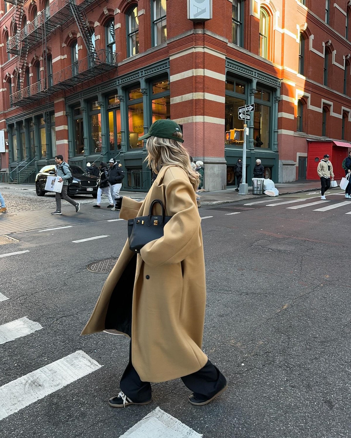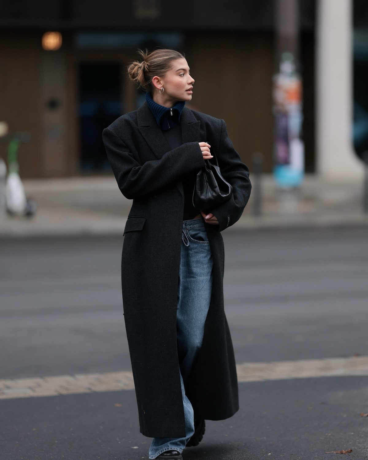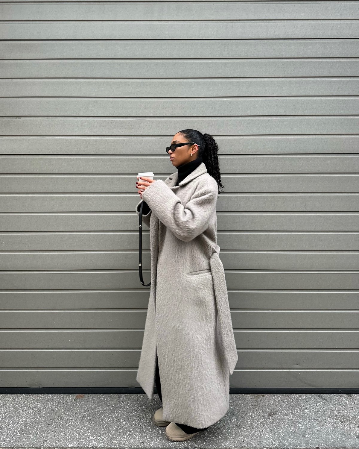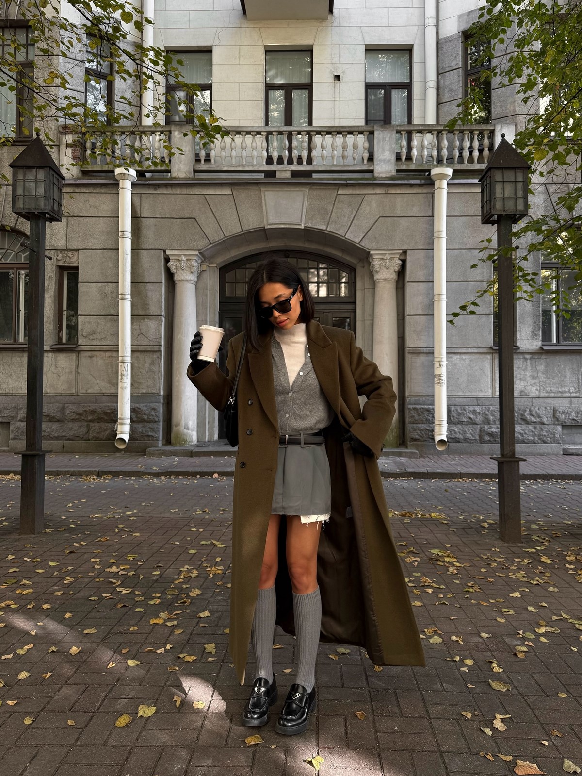 Современное пальто легко адаптируется под любой стиль. В дуэте с высокими сапогами и кожаными перчатками оно создаст элегантный образ в духе old money. С джинсами, массивными ботинками и худи — подчеркнет кэжуал-шик.