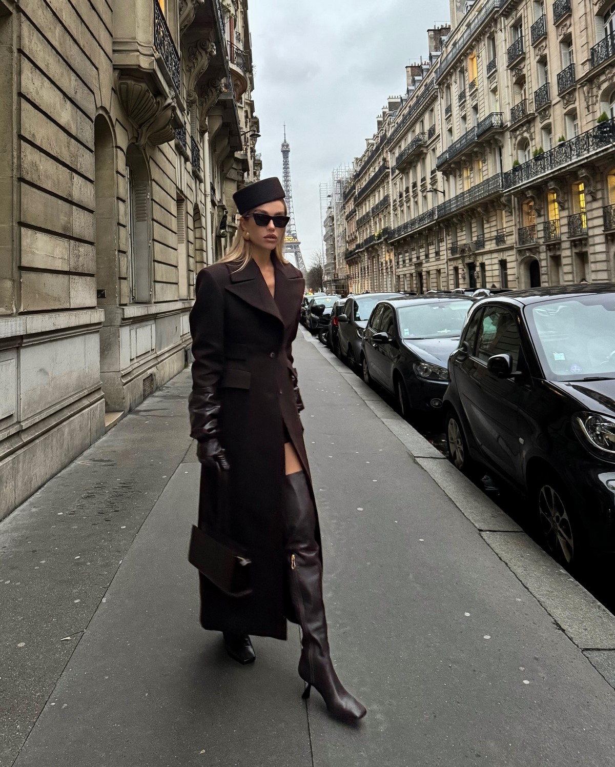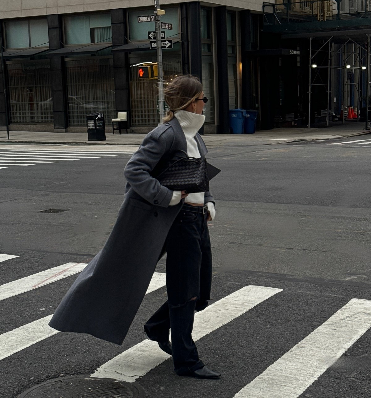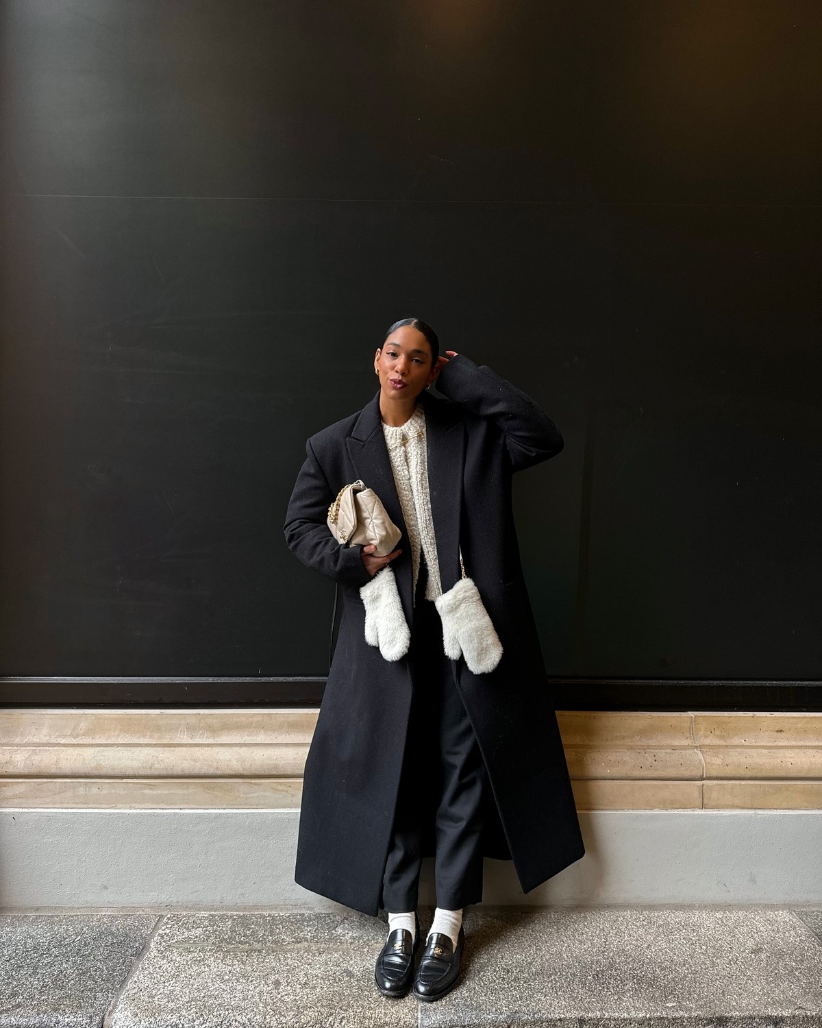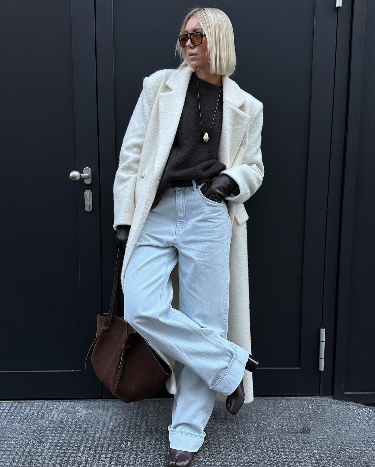 Современное пальто легко адаптируется под любой стиль. В дуэте с высокими сапогами и кожаными перчатками оно создаст элегантный образ в духе old money. С джинсами, массивными ботинками и худи — подчеркнет кэжуал-шик.