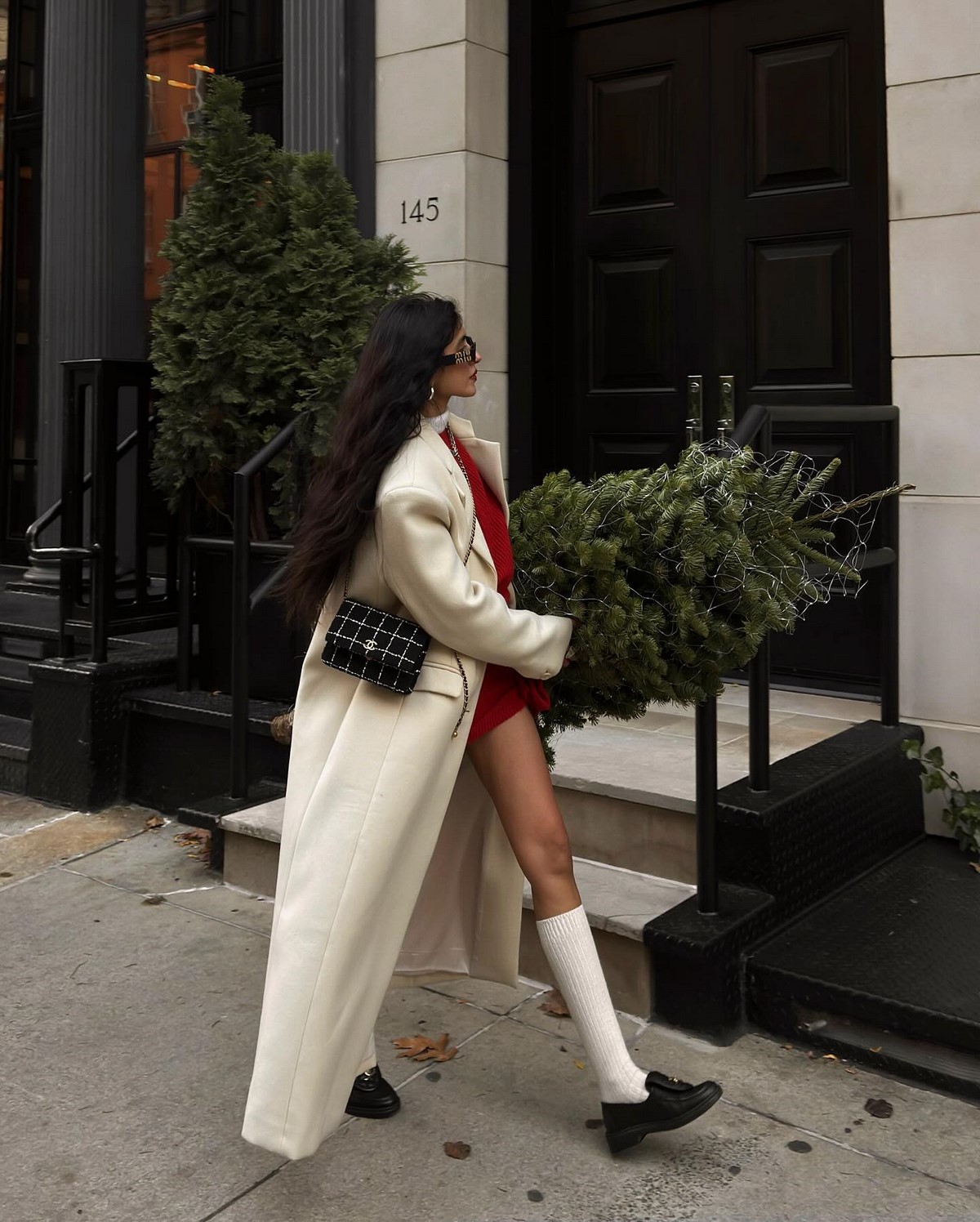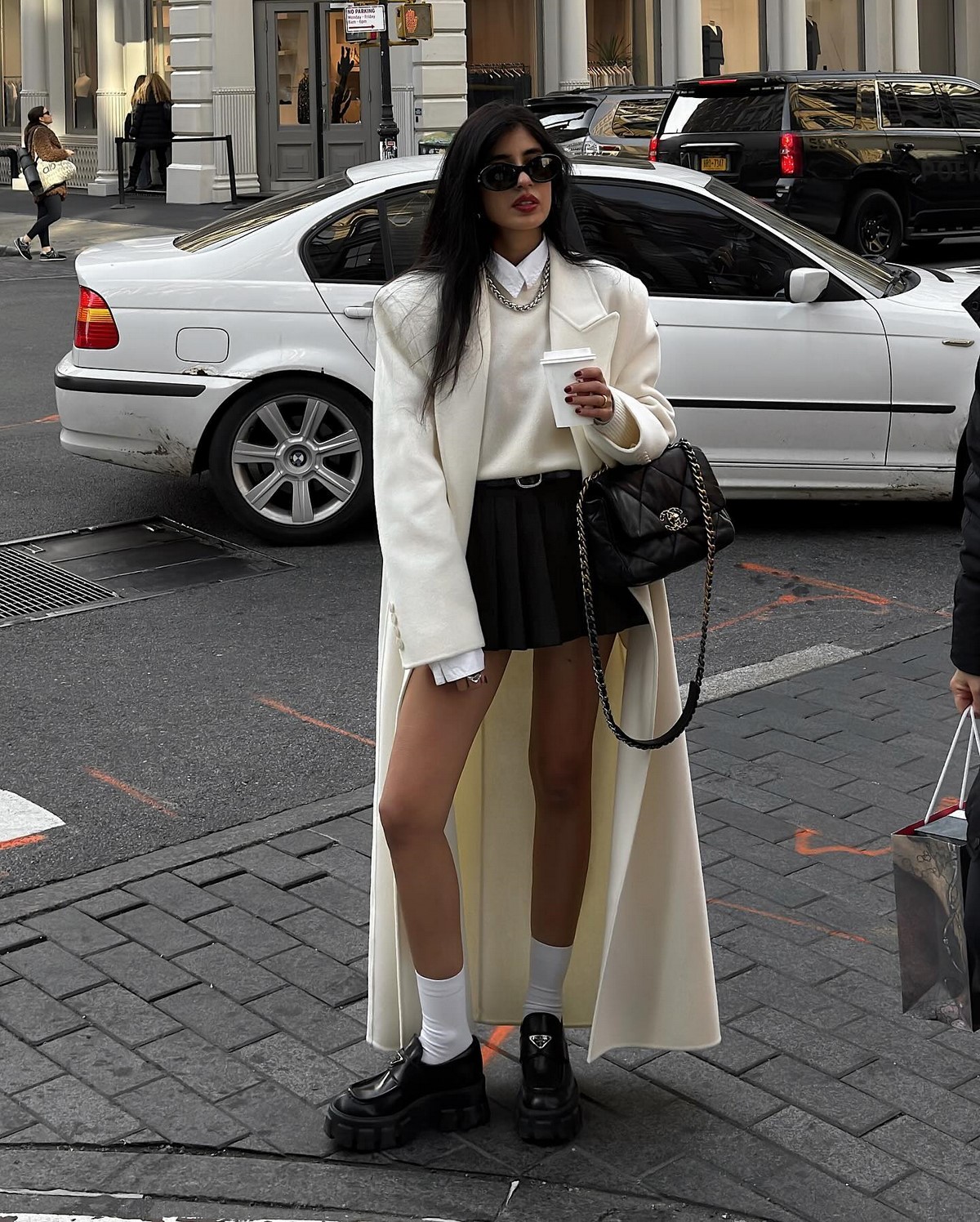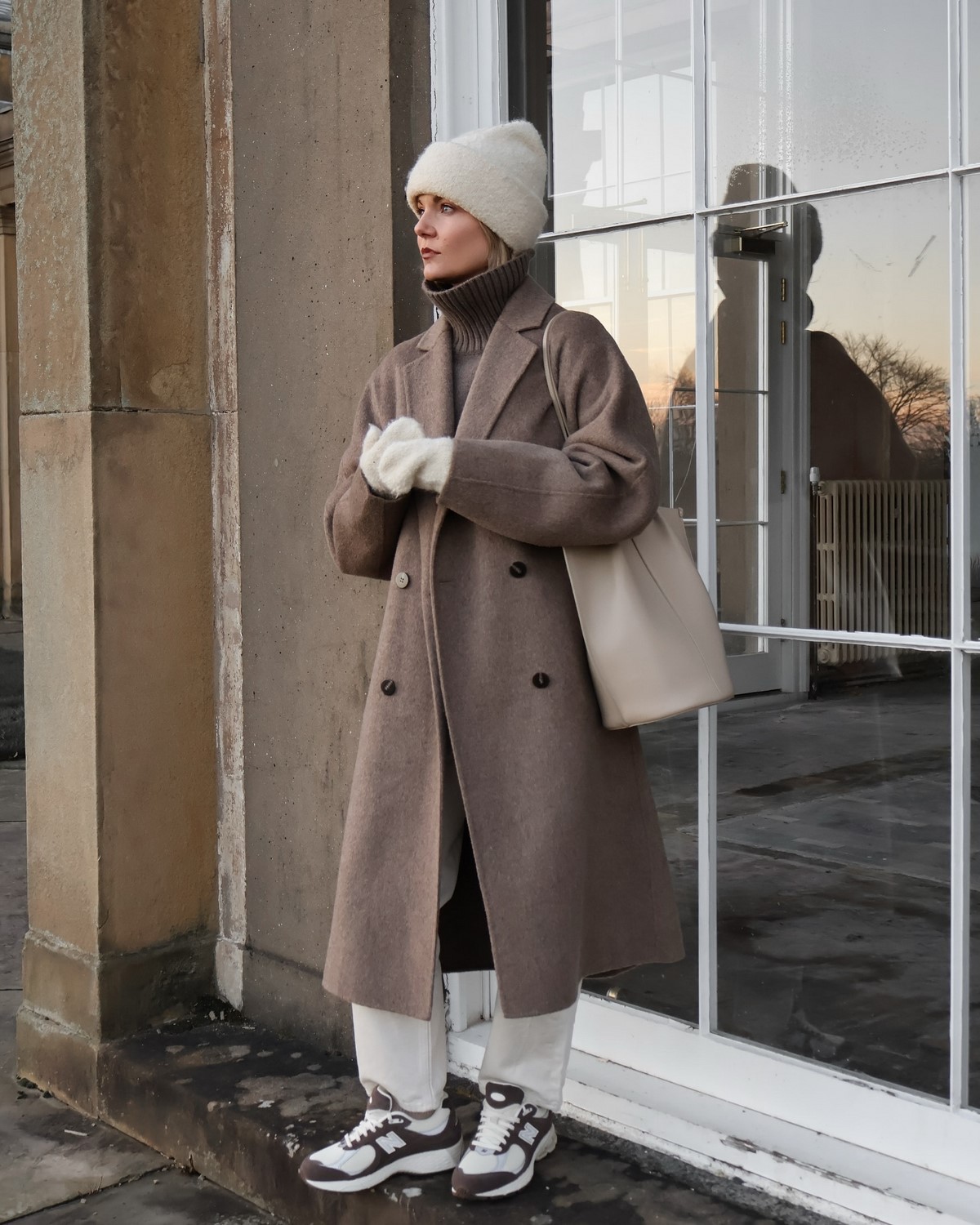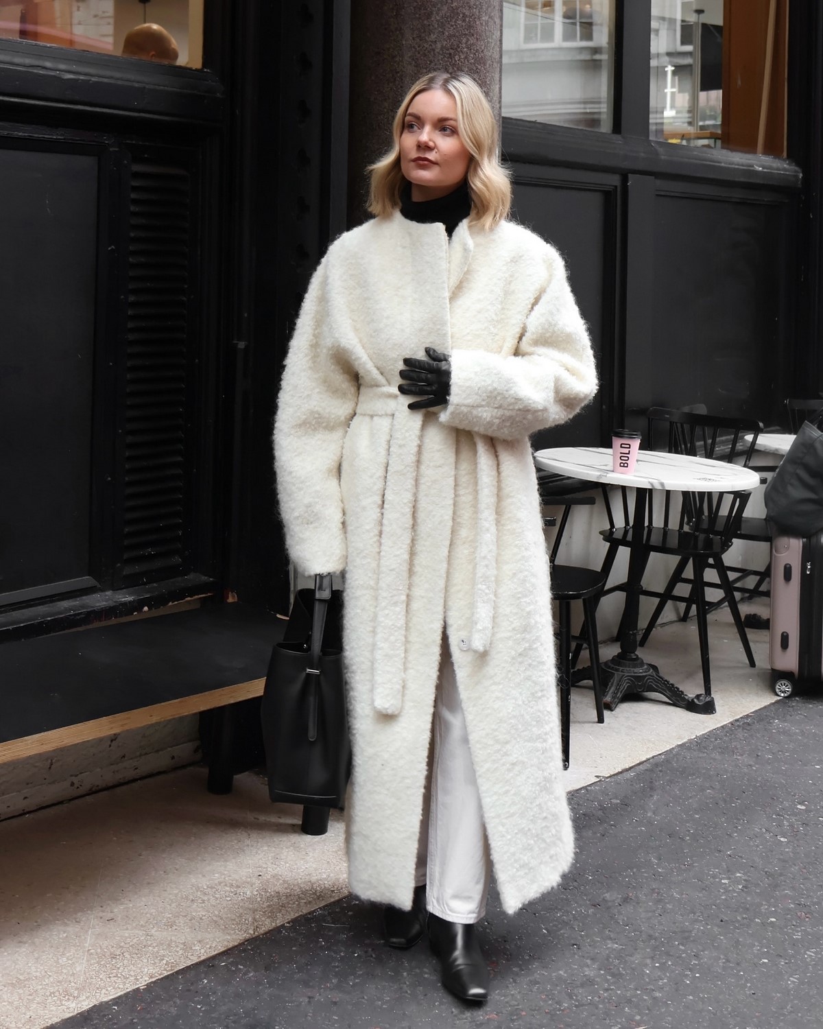 Современное пальто легко адаптируется под любой стиль. В дуэте с высокими сапогами и кожаными перчатками оно создаст элегантный образ в духе old money. С джинсами, массивными ботинками и худи — подчеркнет кэжуал-шик.