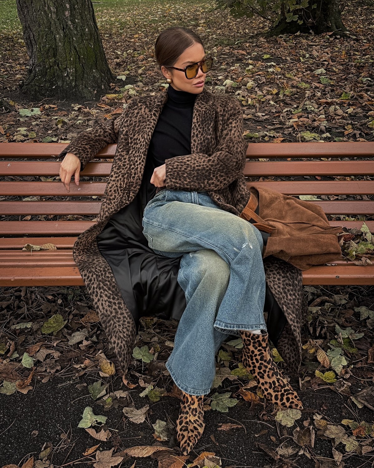 Леопард, зебра и питон снова в игре. Но теперь эти принты выглядят утонченно, без излишней агрессии. Тренд — комбинированные ткани и мягкая палитра: карамель, олива, беж. Такое пальто станет идеальным акцентом к однотонному луку.