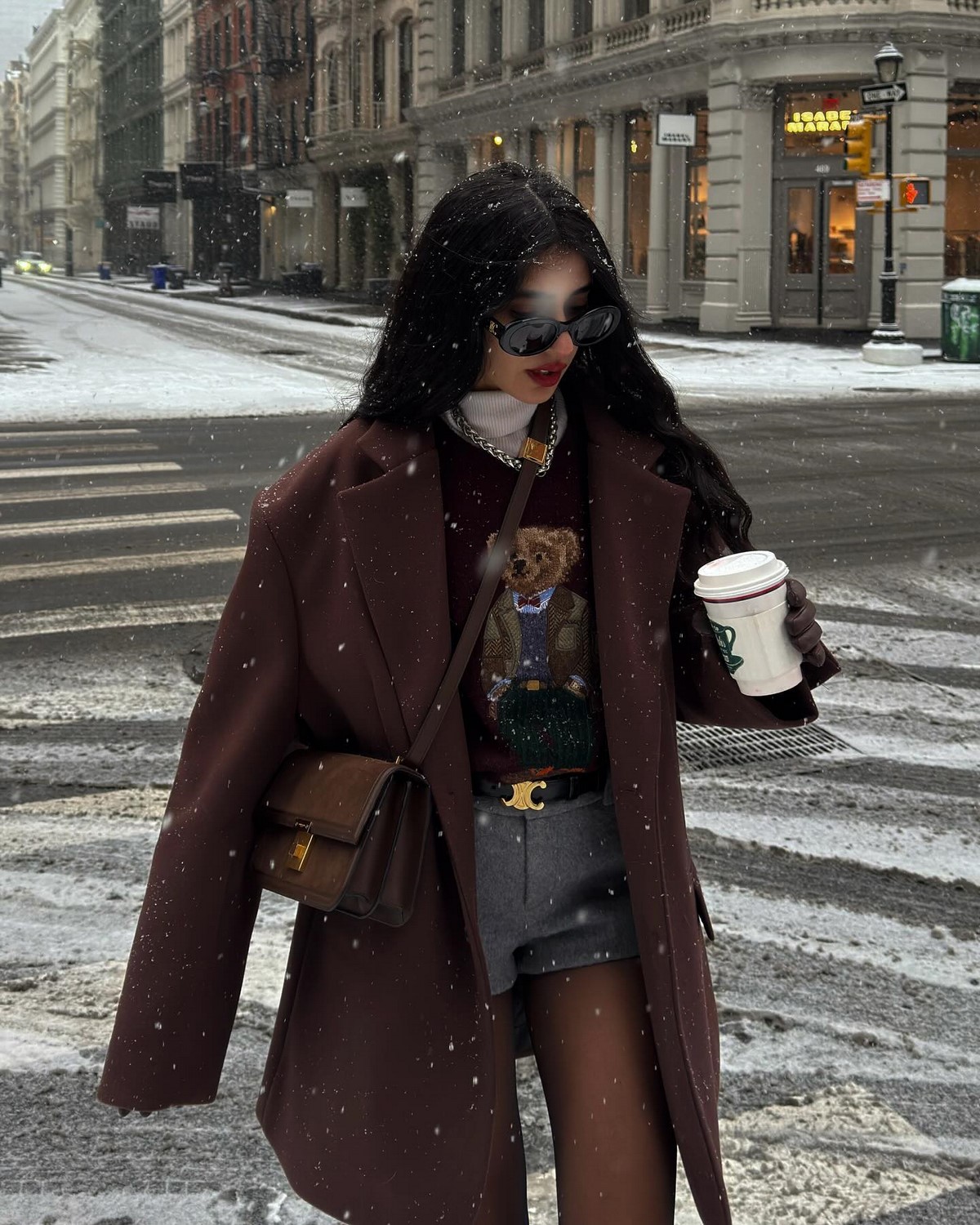 Для офиса подойдут классические модели с поясом или кейпы, а для выходных — оверсайз пальто в паре с кроссовками и шапкой-бини. Вечером актуально дополнить лук длинным шарфом, крупными украшениями или яркой сумкой. Главный секрет — не бояться сочетаний: пальто в этом сезоне — не просто верхняя одежда, а выразительное средство самовыражения.