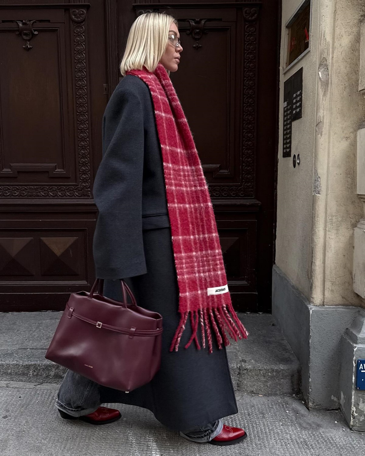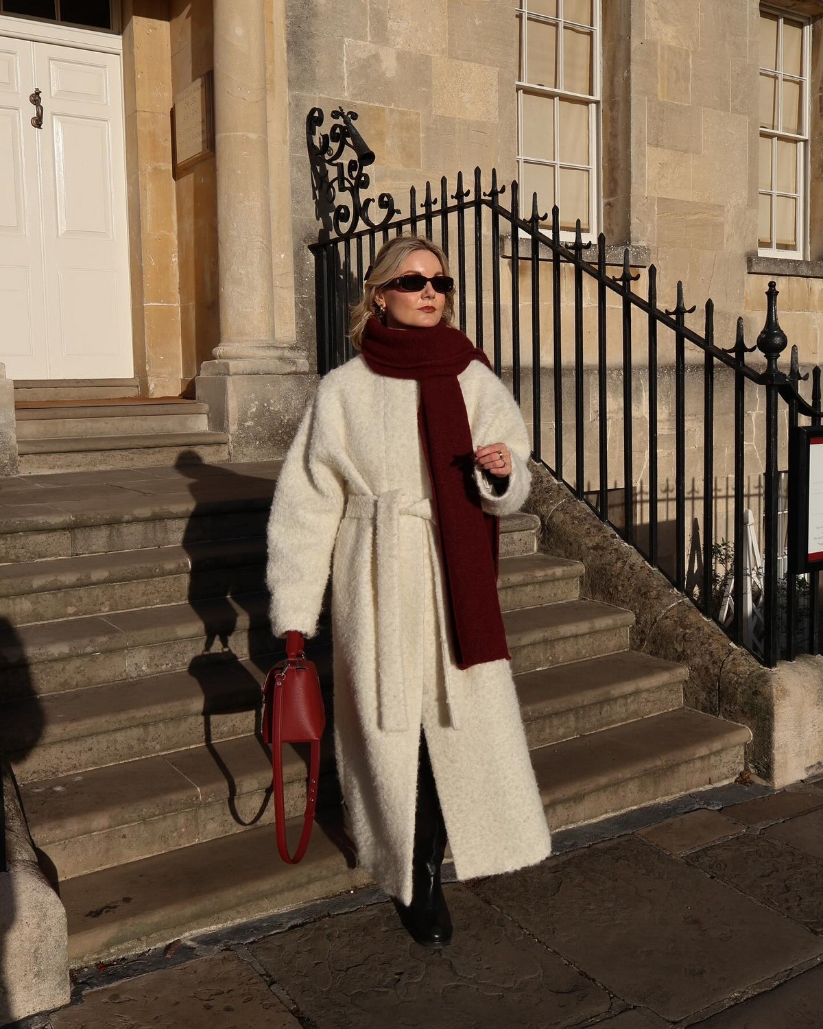 Шарф становится не аксессуаром, а частью конструкции пальто. Модели с пришитыми или съемными шарфами создают ощущение уюта и слоистости. Особенно популярны мягкие фактуры — кашемир, альпака. Сочетайте такие пальто с ботфортами или массивными сапогами.