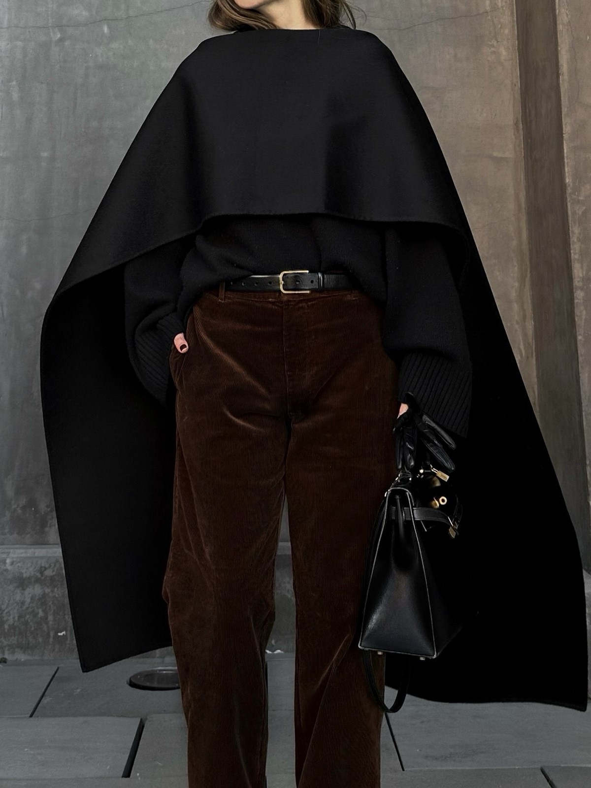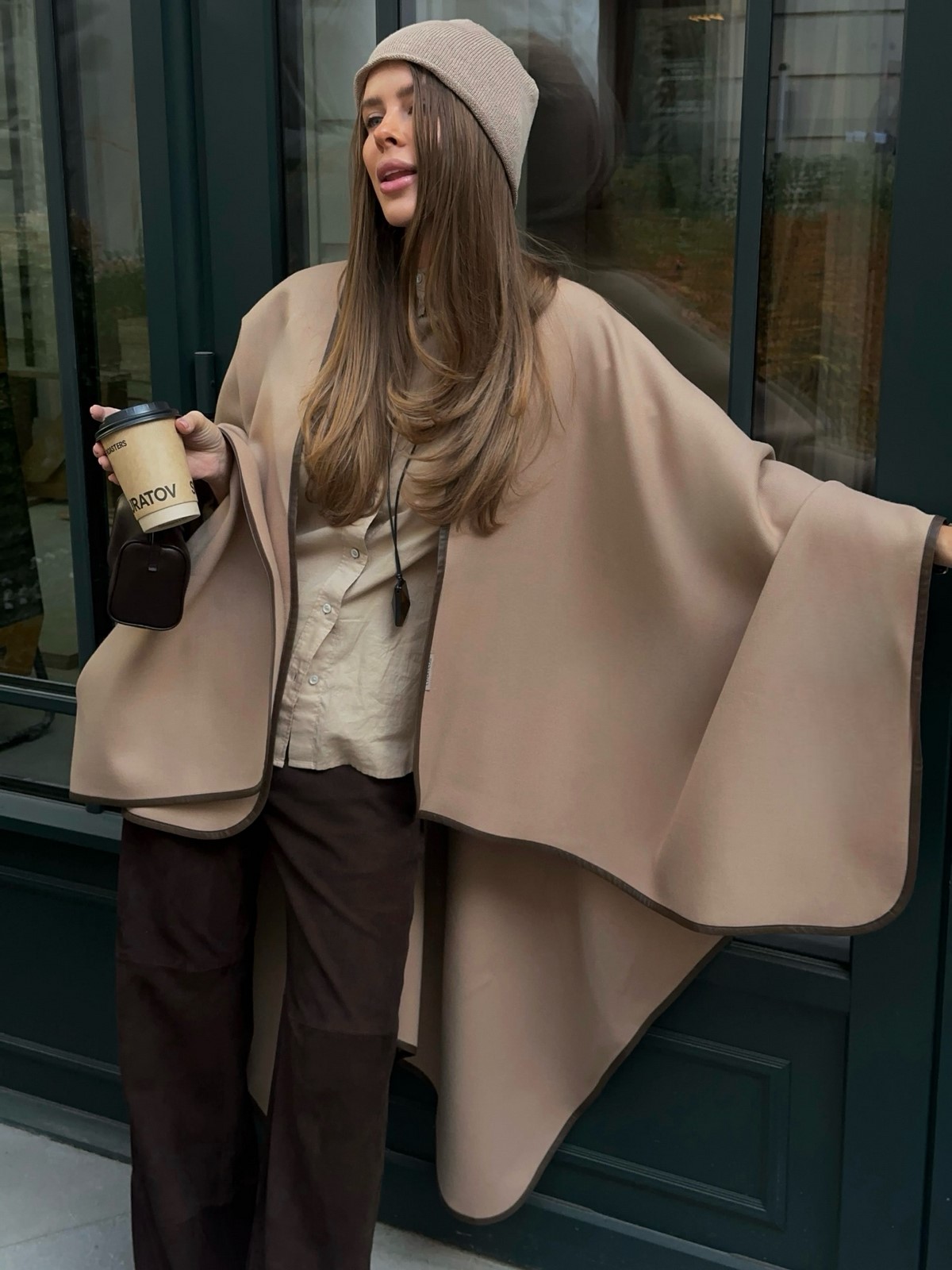 Аристократичный и эффектный вариант, который стал хитом подиумов. Кейпы сочетают элегантность и комфорт, позволяя свободно двигаться. Модели из плотной шерсти, твида или кашемира идеально подойдут для стильных прогулок и светских выходов.
