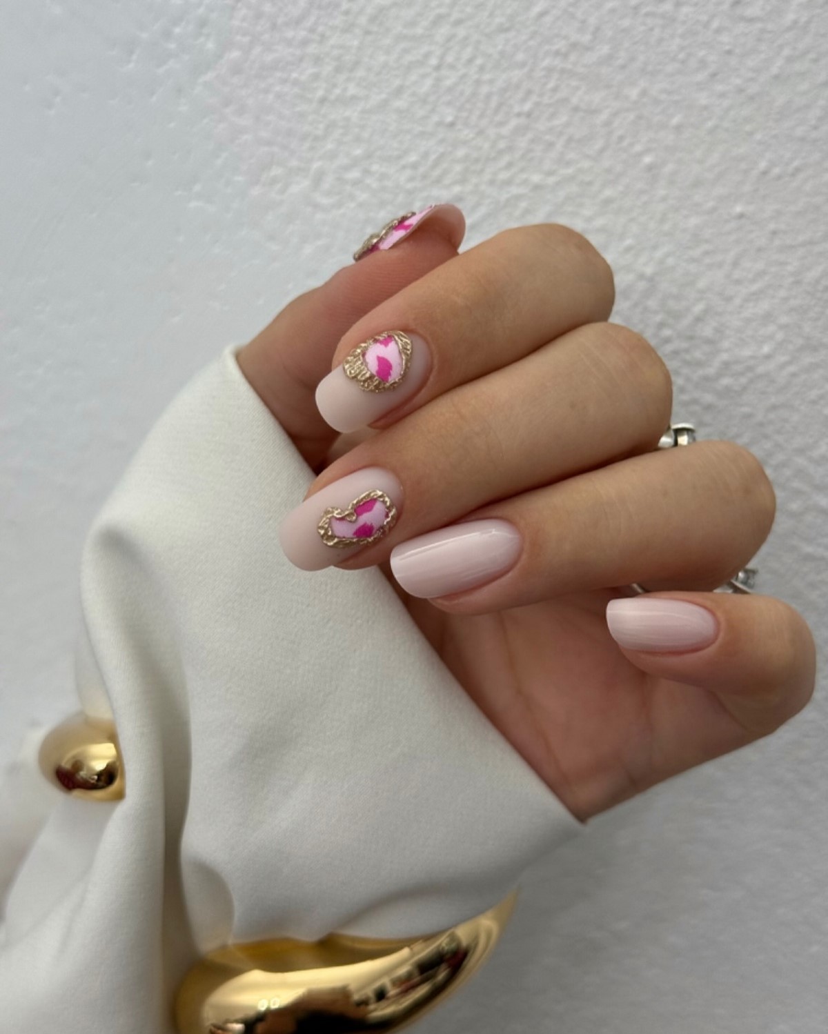 Тренд на фактурные поверхности продолжится весной 2026 года, предлагая ногтям эффект штукатурки, песка и каменной крошки. Этот дизайн придает ногтям необычный бархатистый или шероховатый вид, создавая стильный и минималистичный эффект. К 8 Марта можно выбрать пастельные текстурные покрытия, гармонирующие с романтичными образами. Особенно популярными будут сочетания матового покрытия с гладкими глянцевыми акцентами.