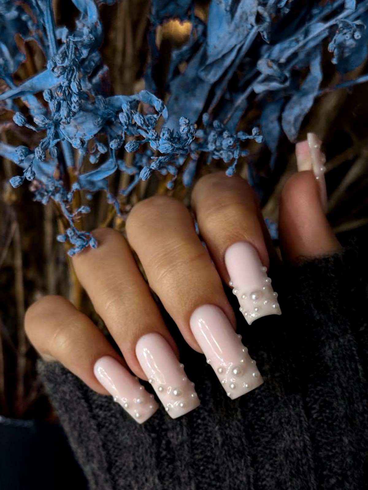 Френч с втиркой становится воплощением современной роскоши. Перламутровые, жемчужные и ледяные эффекты создают мягкое свечение, которое выглядит особенно изысканно в зимнем свете. База при этом остается максимально нейтральной.