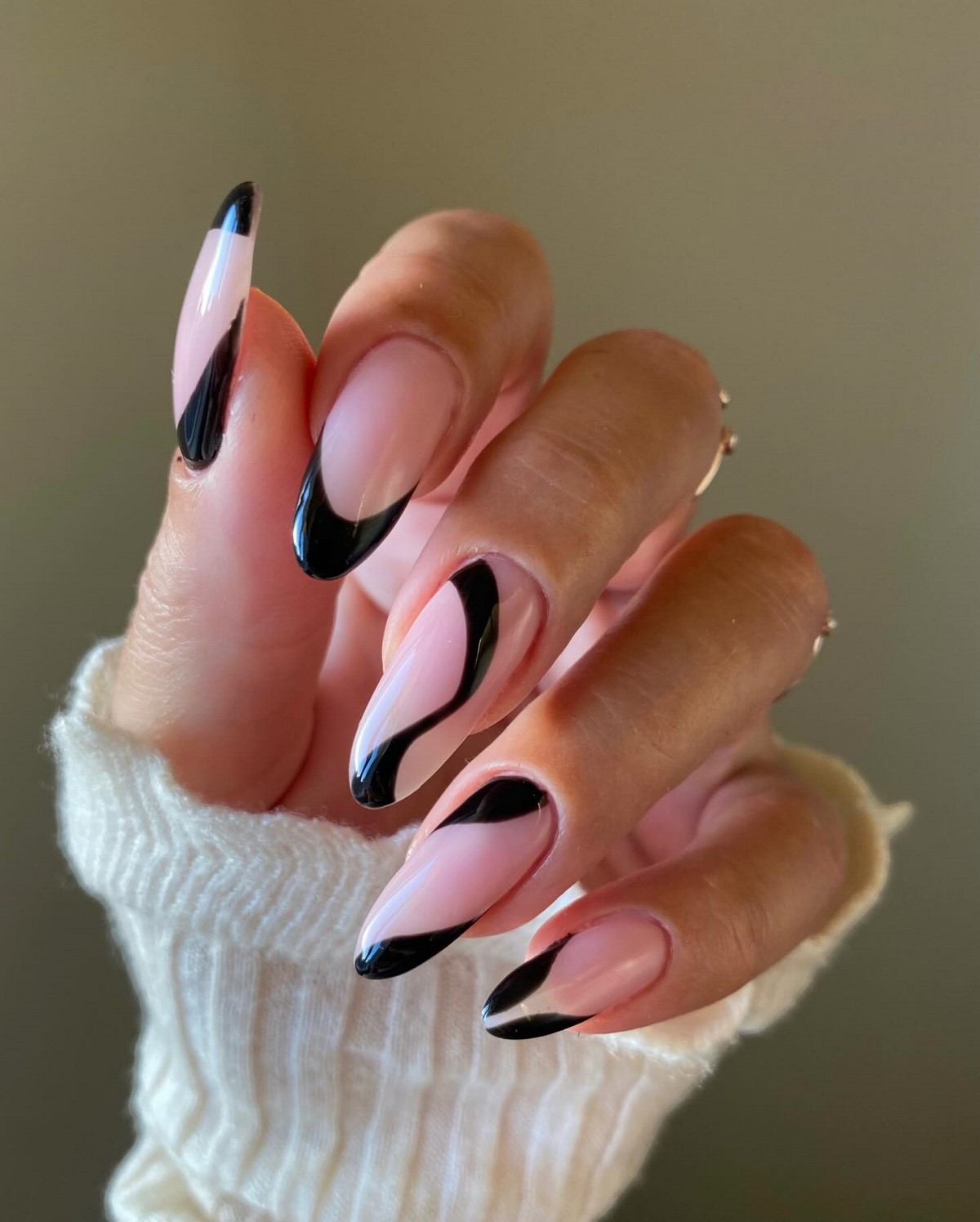 Черный френч продолжает удерживать позиции одного из самых статусных вариантов. В 2026 году он выглядит особенно утонченно в сочетании с матовой или полупрозрачной основой. Тонкая линия черного цвета добавляет графичности и строгости.