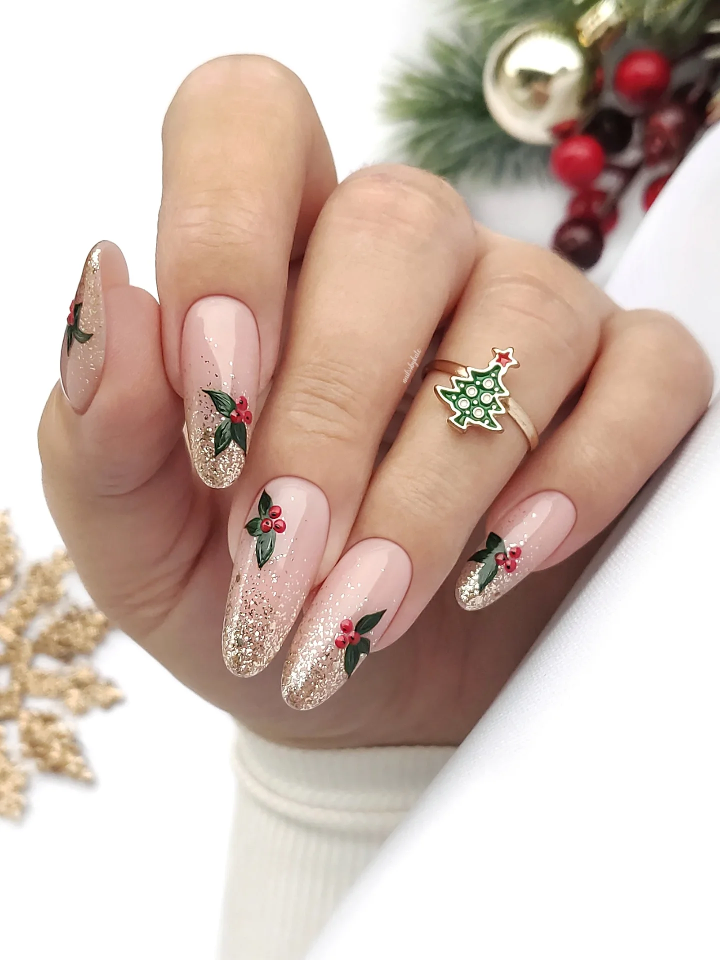 Зимний маникюр с глиттером 2026 года это гармония сияния, минимализма и продуманного дизайна. Блестящие элементы используются аккуратно и подчеркивают эстетику образа, а не доминируют над ним. В моде натуральные оттенки, точечные акценты и эффект мягкого свечения.