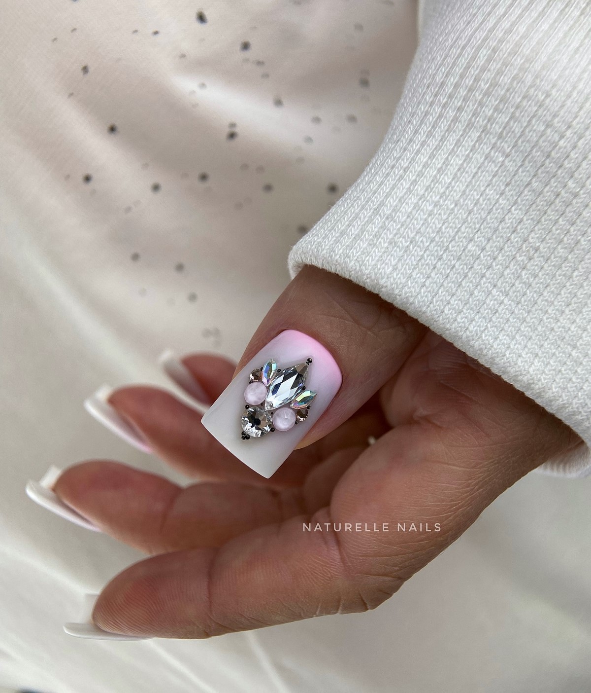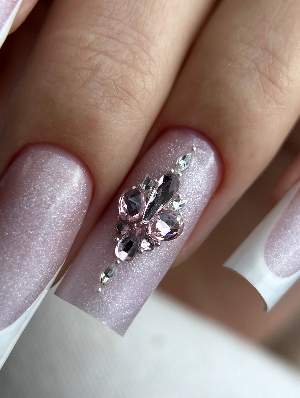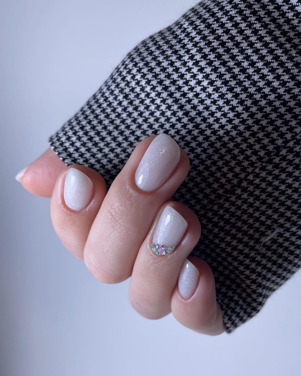 Зимний маникюр со стразами и жемчугом: топ-идеи 2025-2026