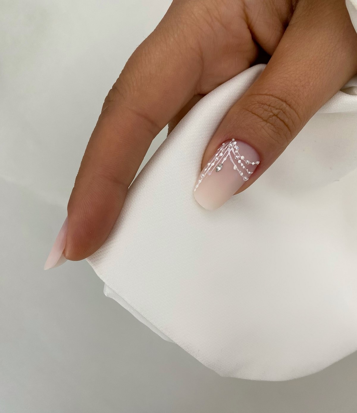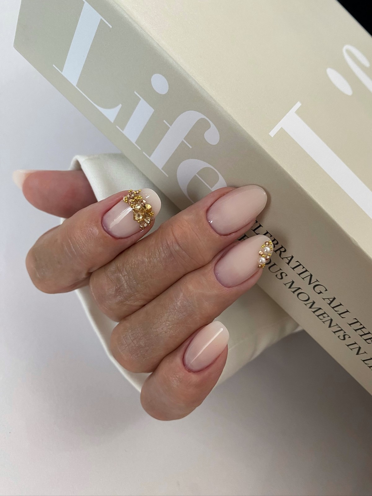 Минималистичные дизайны со стразами и жемчугом остаются на пике популярности, так как позволяют добавить блеск, не перегружая ногти. Это идеальный выбор для тех, кто предпочитает спокойные, элегантные решения.